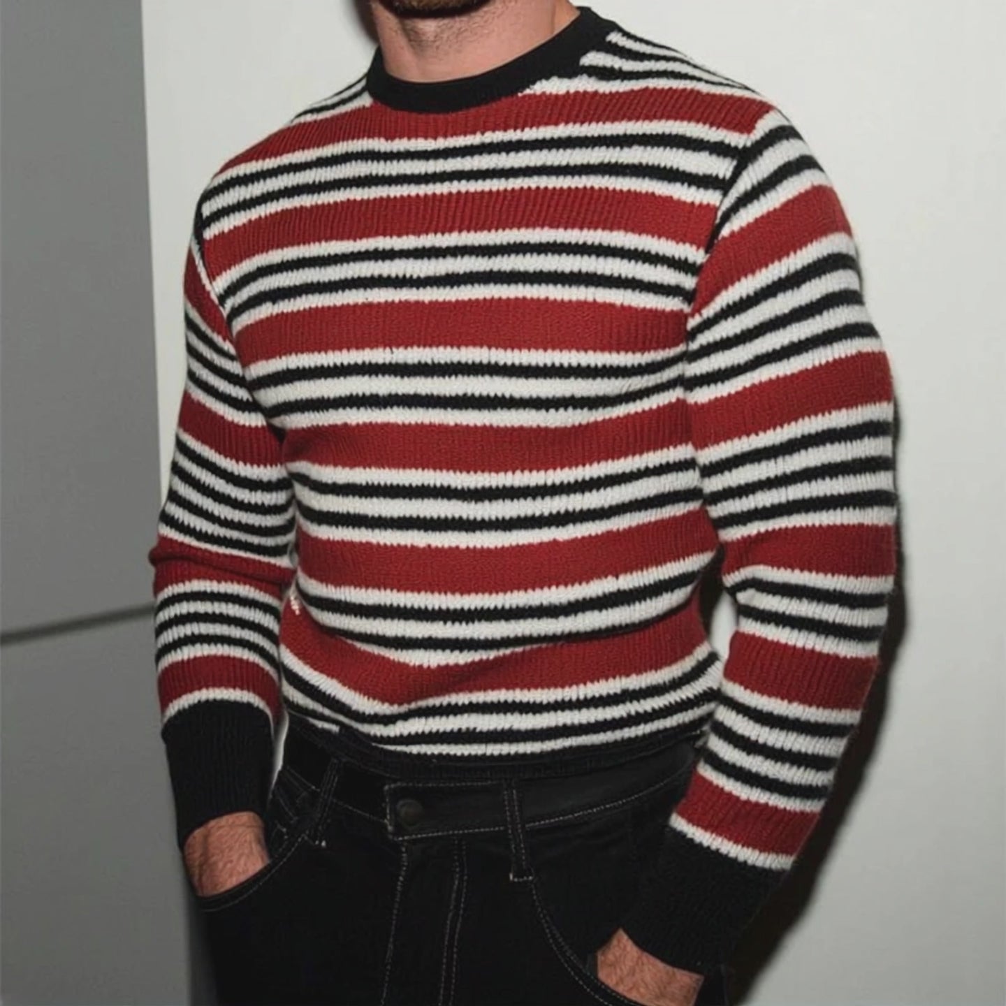 Incorporate the Men's Retro Casual Striped Knit Color Block Crew Neck Sweater into your wardrobe to enjoy a blend of comfort, style, and versatility. Its unique color block and striped pattern help you stand out while staying warm and comfortable.