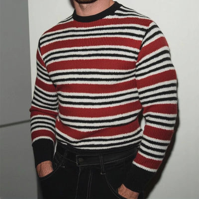 Men's Retro Casual Striped Knit Color Block Crew Neck Sweater MTZ0554A8TO