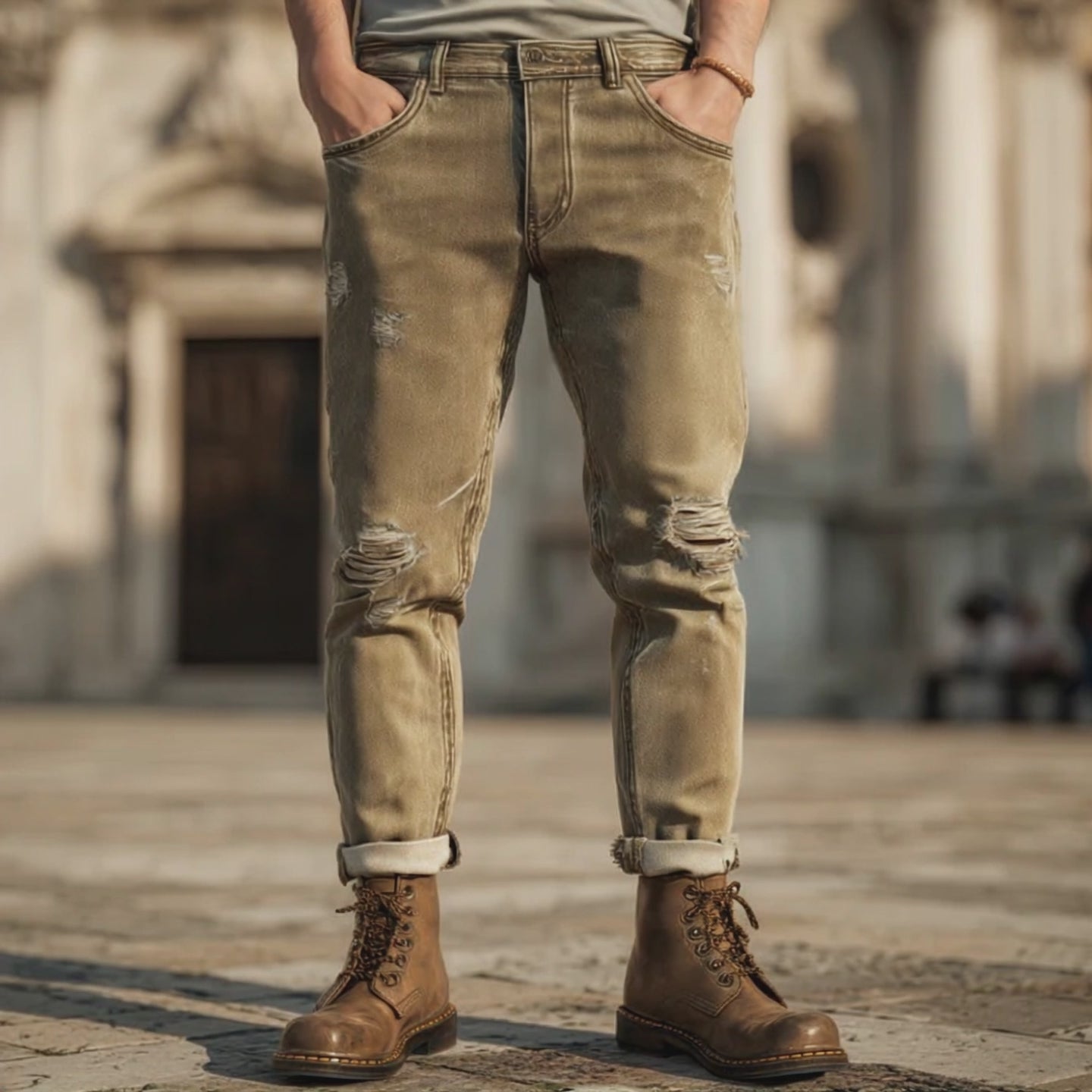 Embrace the enduring appeal of vintage style with the Men's Vintage Fashion Khaki Ripped Jeans. These jeans combine classic design elements with contemporary trends, offering a perfect blend of comfort and edgy style. Ideal for men who appreciate both fashion-forward and timeless looks, these ripped jeans are a versatile addition to any wardrobe.
