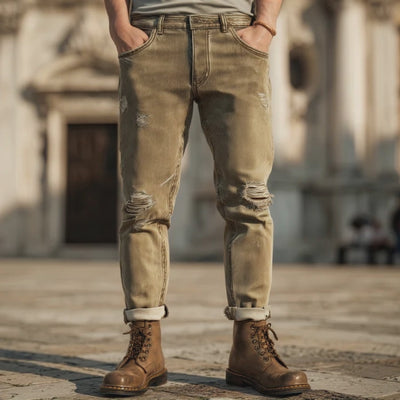 Men's Vintage Fashion Khaki Ripped Jeans