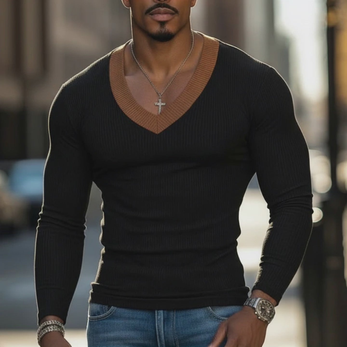 Uformell V-hals for menn, langermet slim fit strikket genser 30697065M