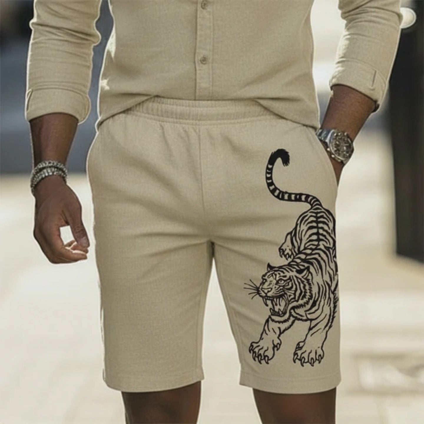 Men's Fashion Tiger-Embroidered 100% Cotton Beach Shorts MTZ2712A8P