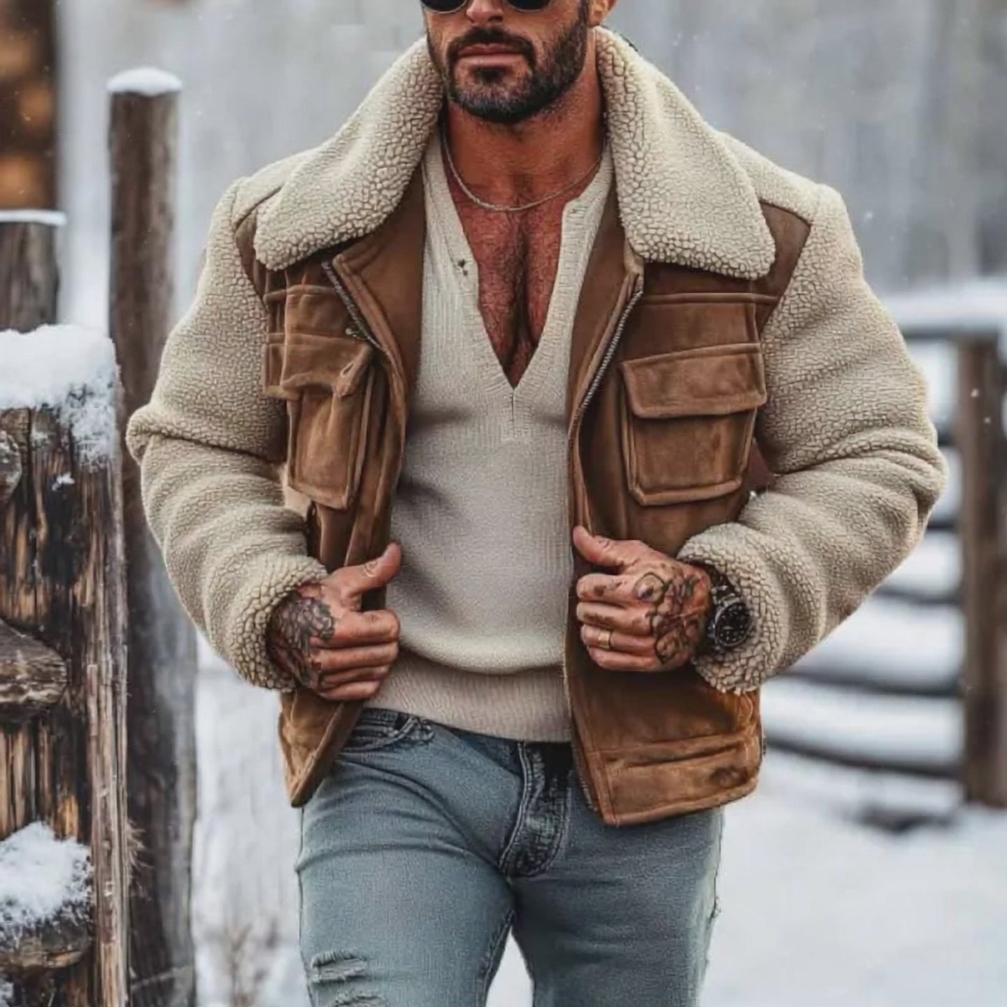 Vintage vinter lammeull for menn, tykk jakke med flere lommer 41317609M