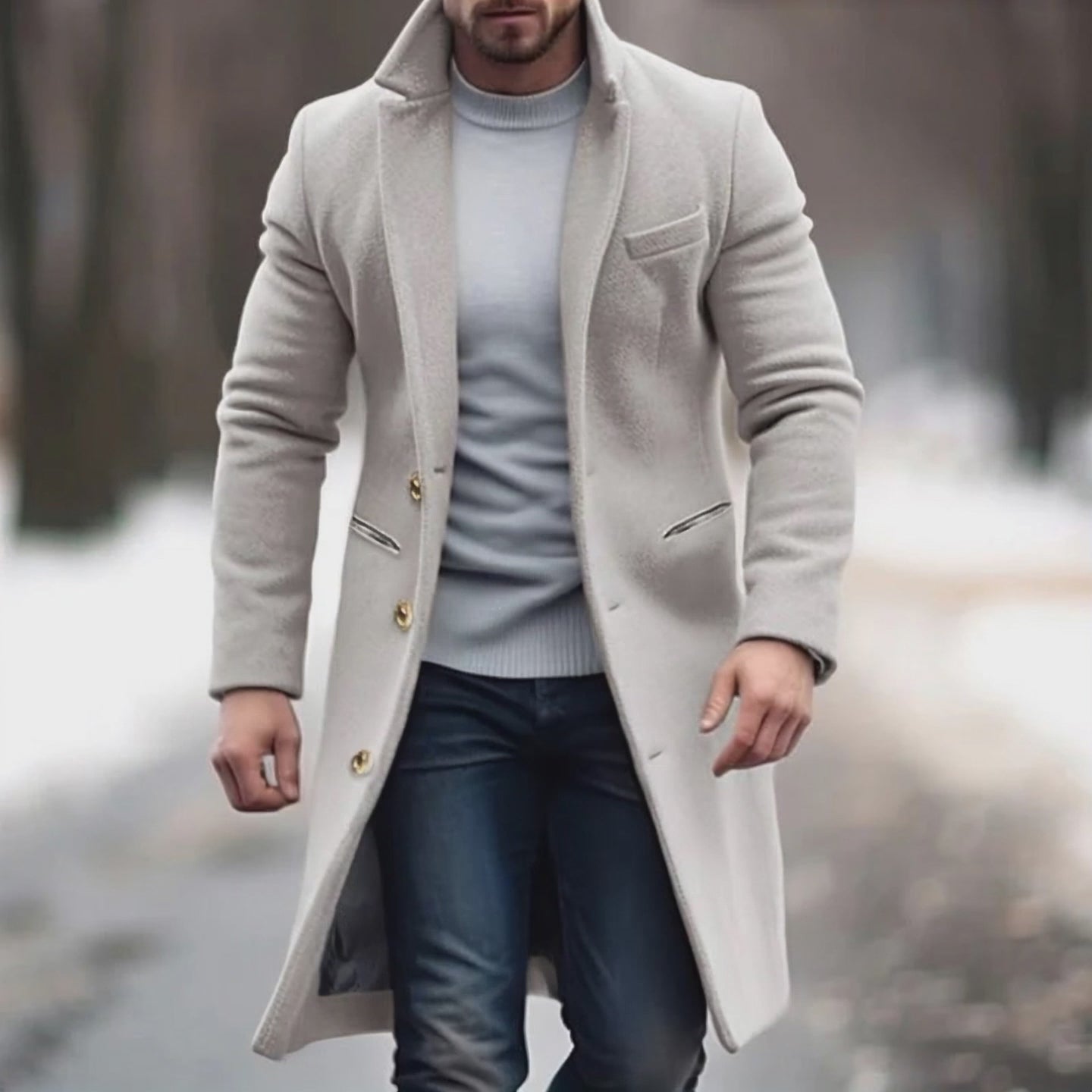 Solid Notch Lapel Dobbel Breasted Lang Frakk for menn 41875162Z