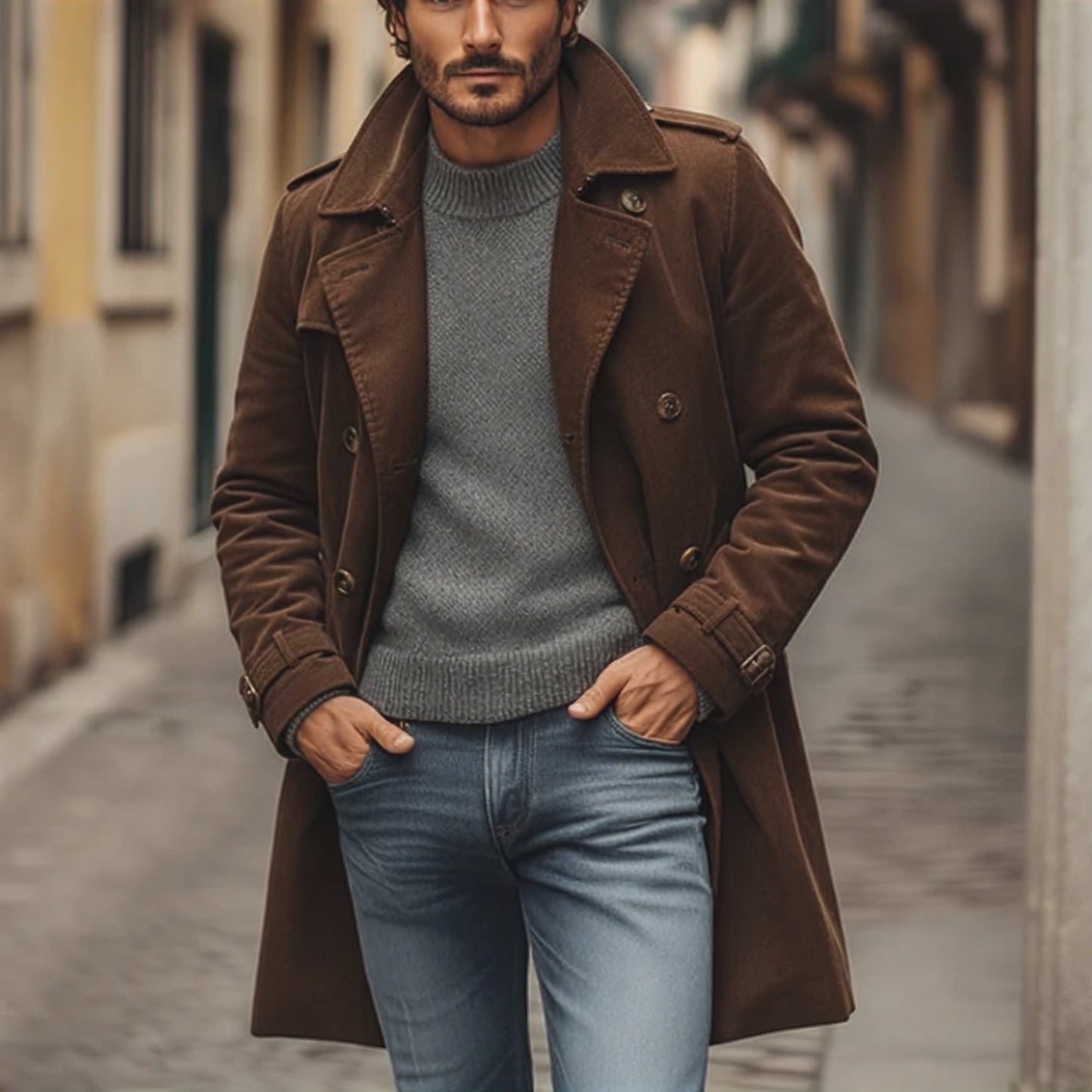 Men's Retro Casual Knit Double-Breasted Mid-Length Coat MTA3130J8TO