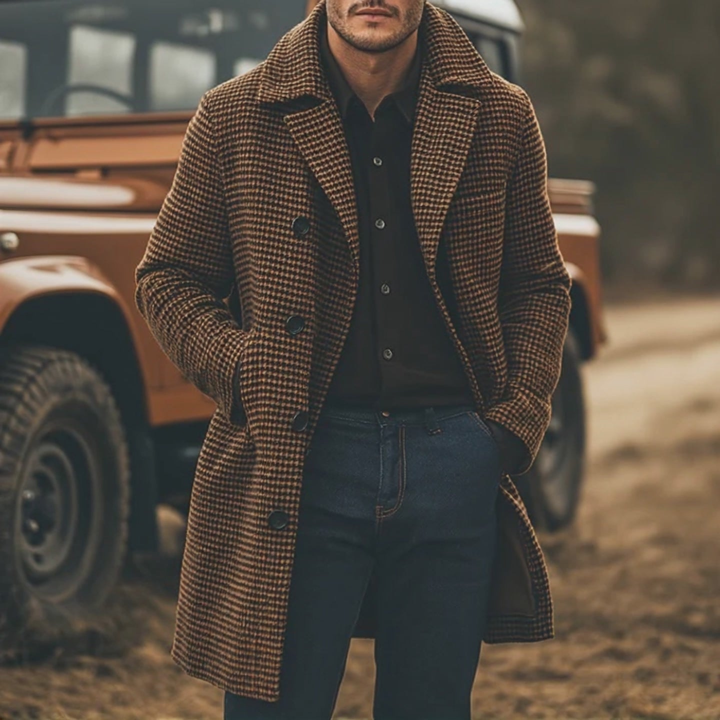 Men's Houndstooth Lapel Button-down Mid-length Coat MTA0101K1X
