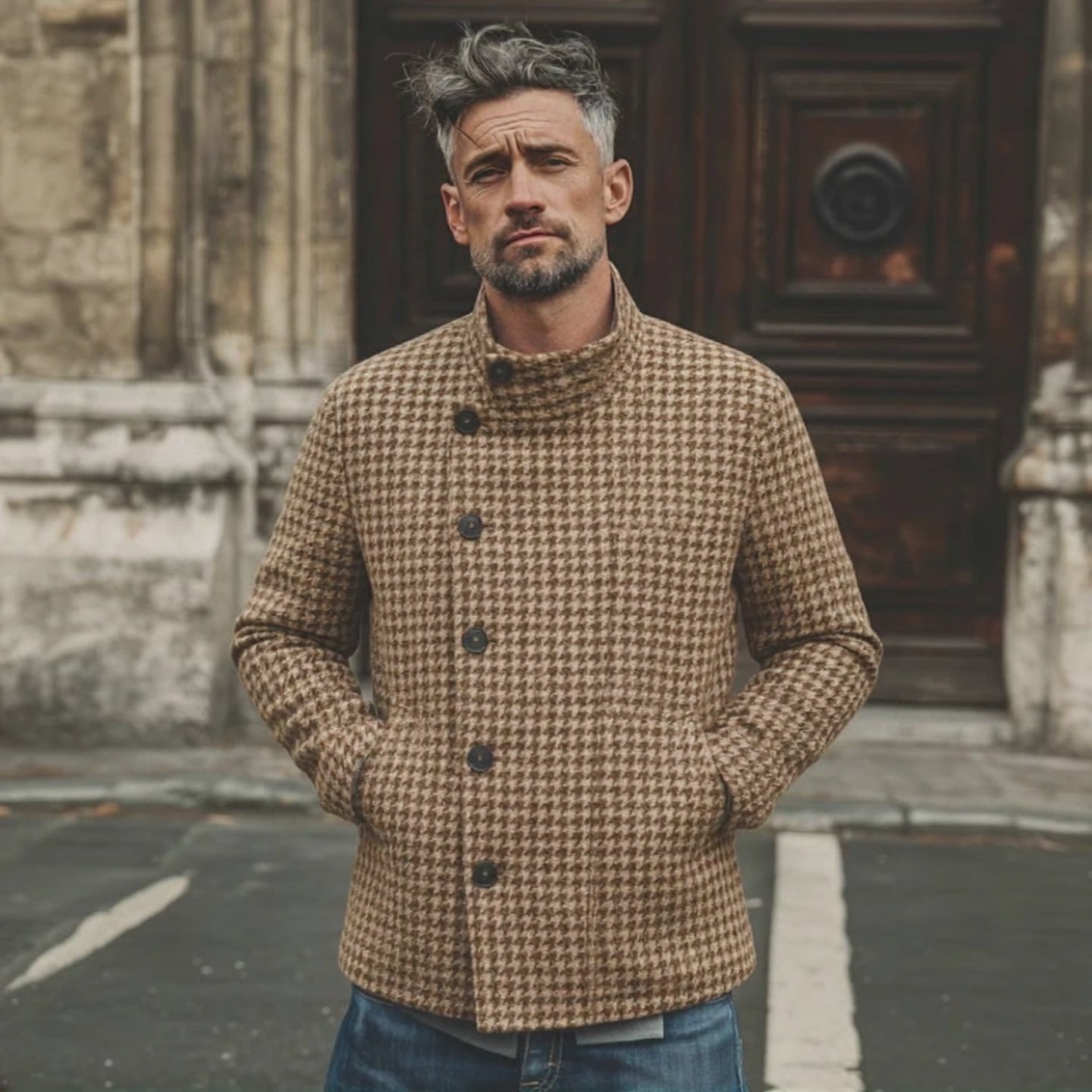 Men's Classic Retro Stand-up Collar Houndstooth Wool Jacket MTA2754K8K
