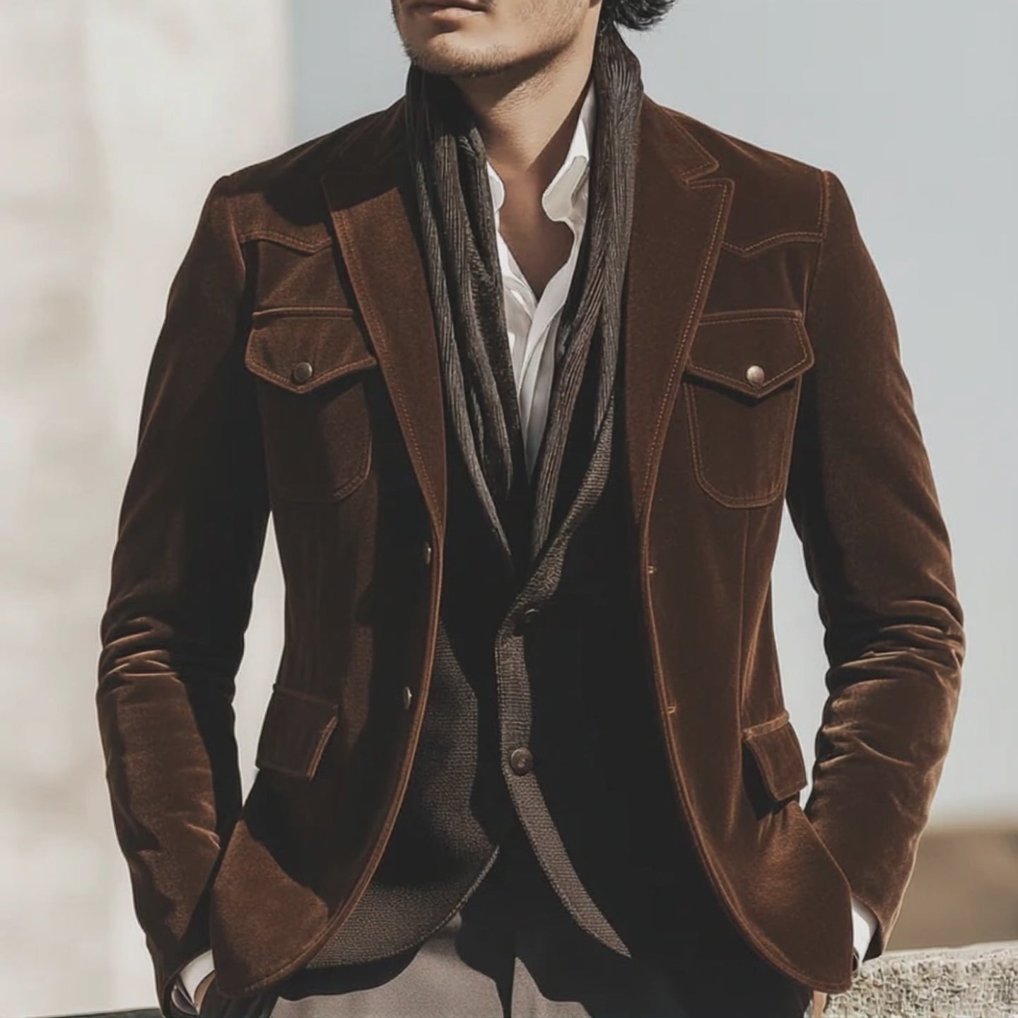 Men's Classic Brown Velvet Two-button Slim-fit Jacket MTA2825K9U