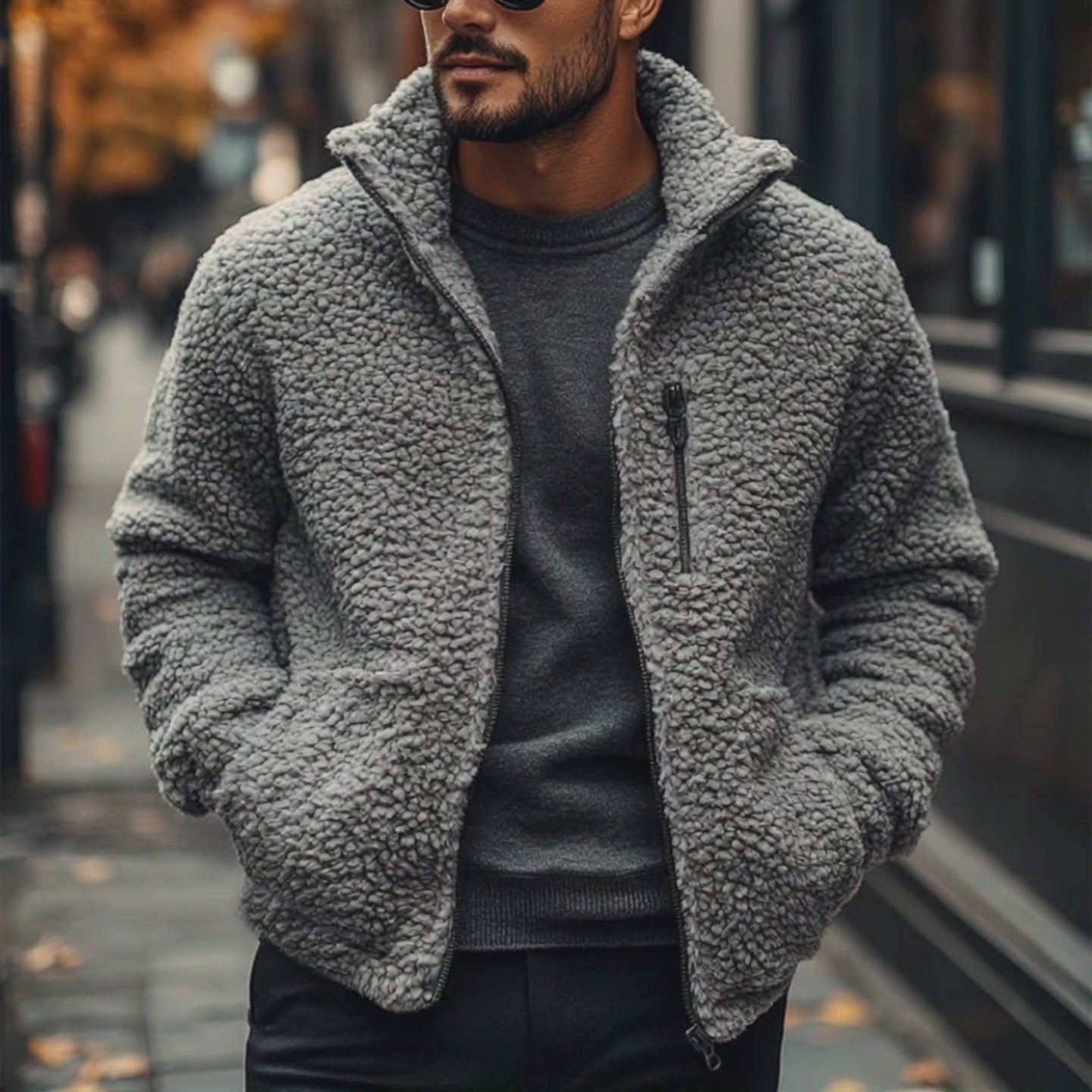 Men's Urban Warm Faux Lambskin Stand-collar Zip-up Jacket MTA2863K5U