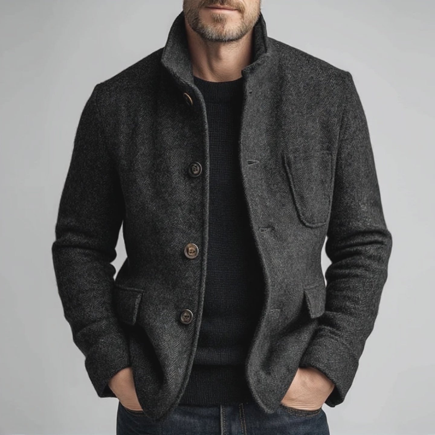 Men's Classic Retro Stand-up Collar Herringbone Wool Jacket MTA2886K4K