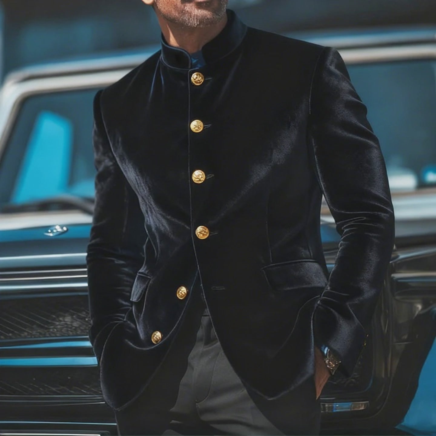 Men's Vintage Velvet Stand-Collar Multi-Button Embroidered Slim-Fit Jacket MTA1188K3U