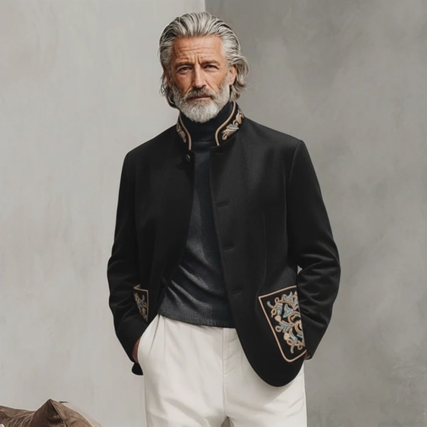 Men's Classic Retro Lapel Embroidered Faux Wool Jacket MTA0663K9K