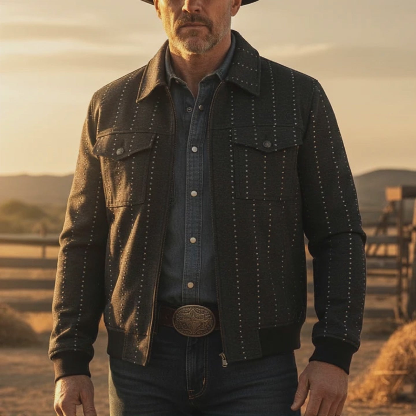 Men's Retro Cow Print Twill Cotton Jacket MTA1038K3P