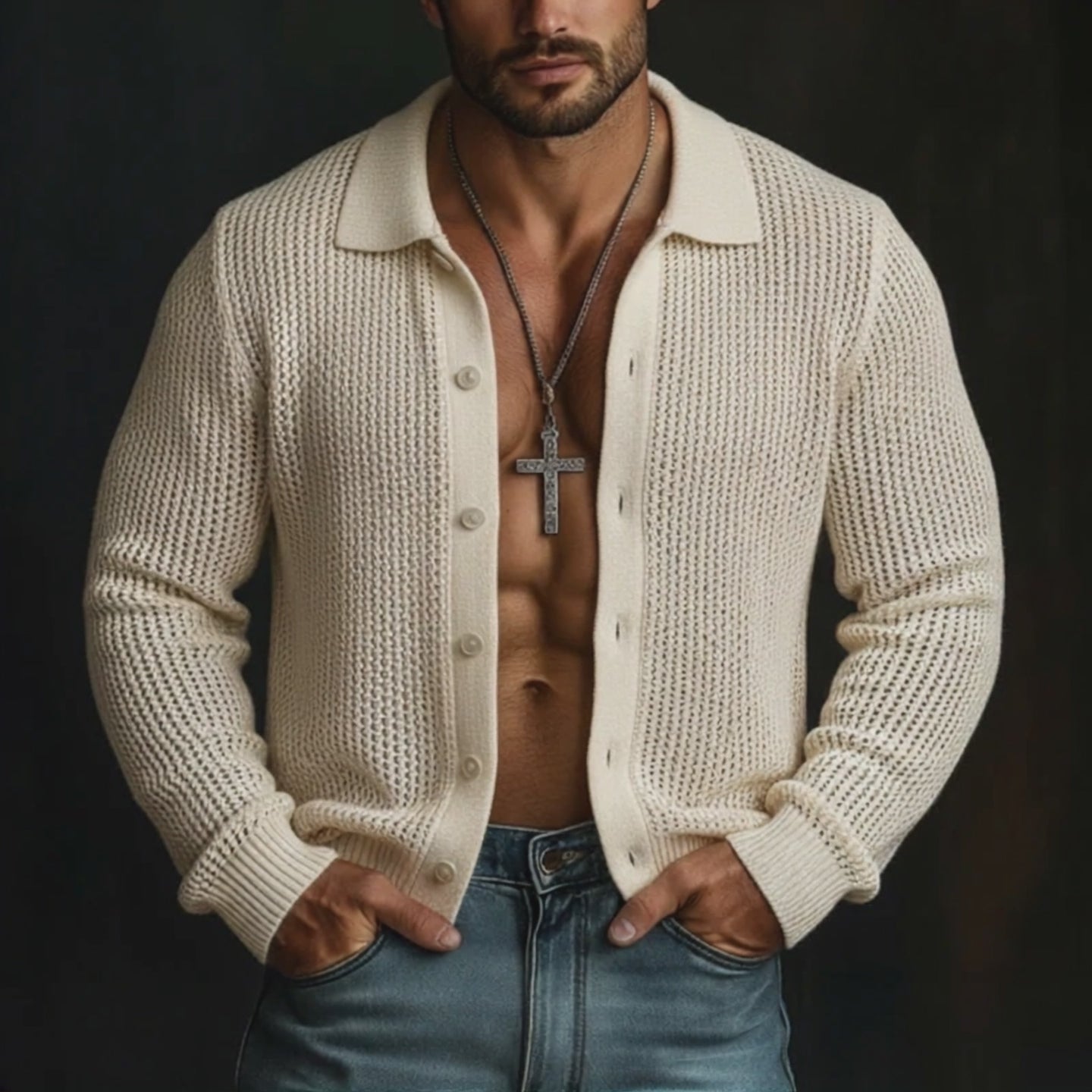 Men's Retro Casual Solid Color Knitted Button-Down Lapel Cardigan