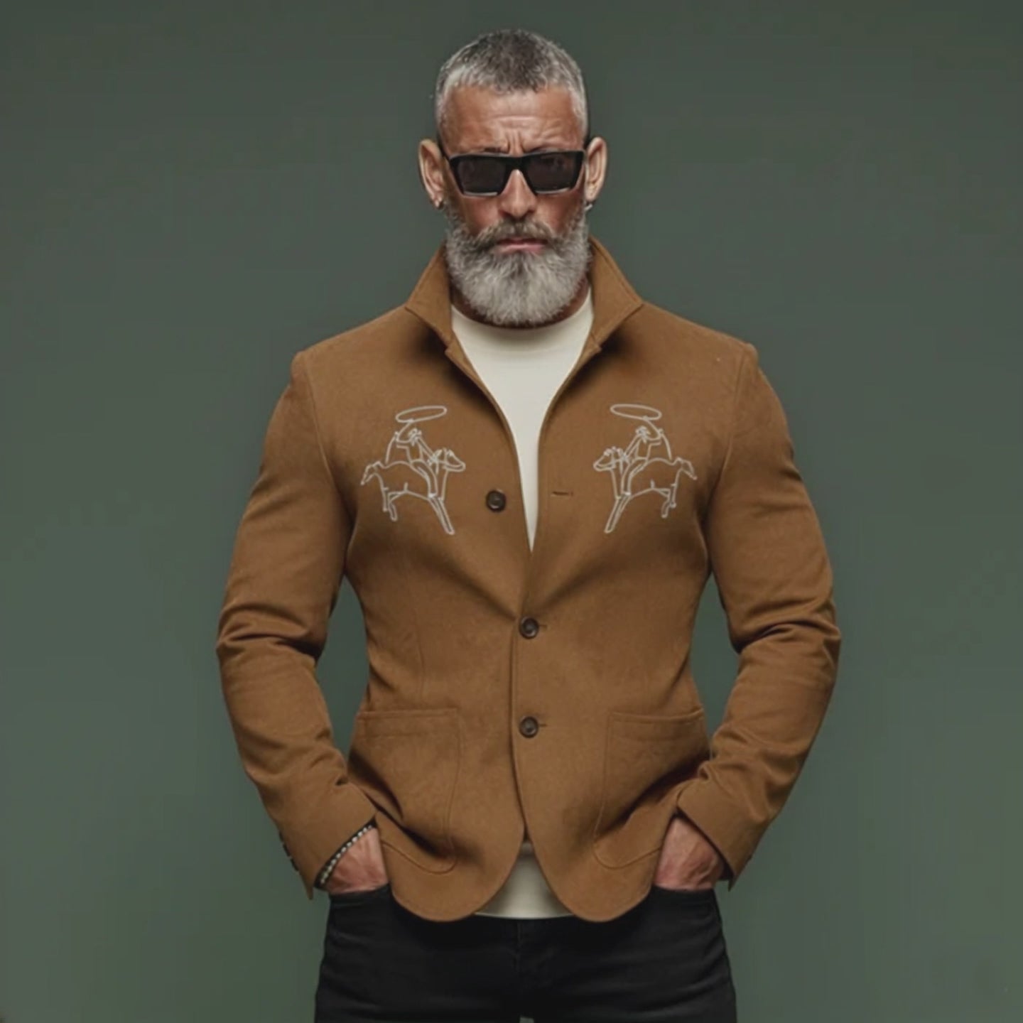 Men's Classic Retro Embroidered Faux Suede Slim-fit Blazer MTA1098K0K