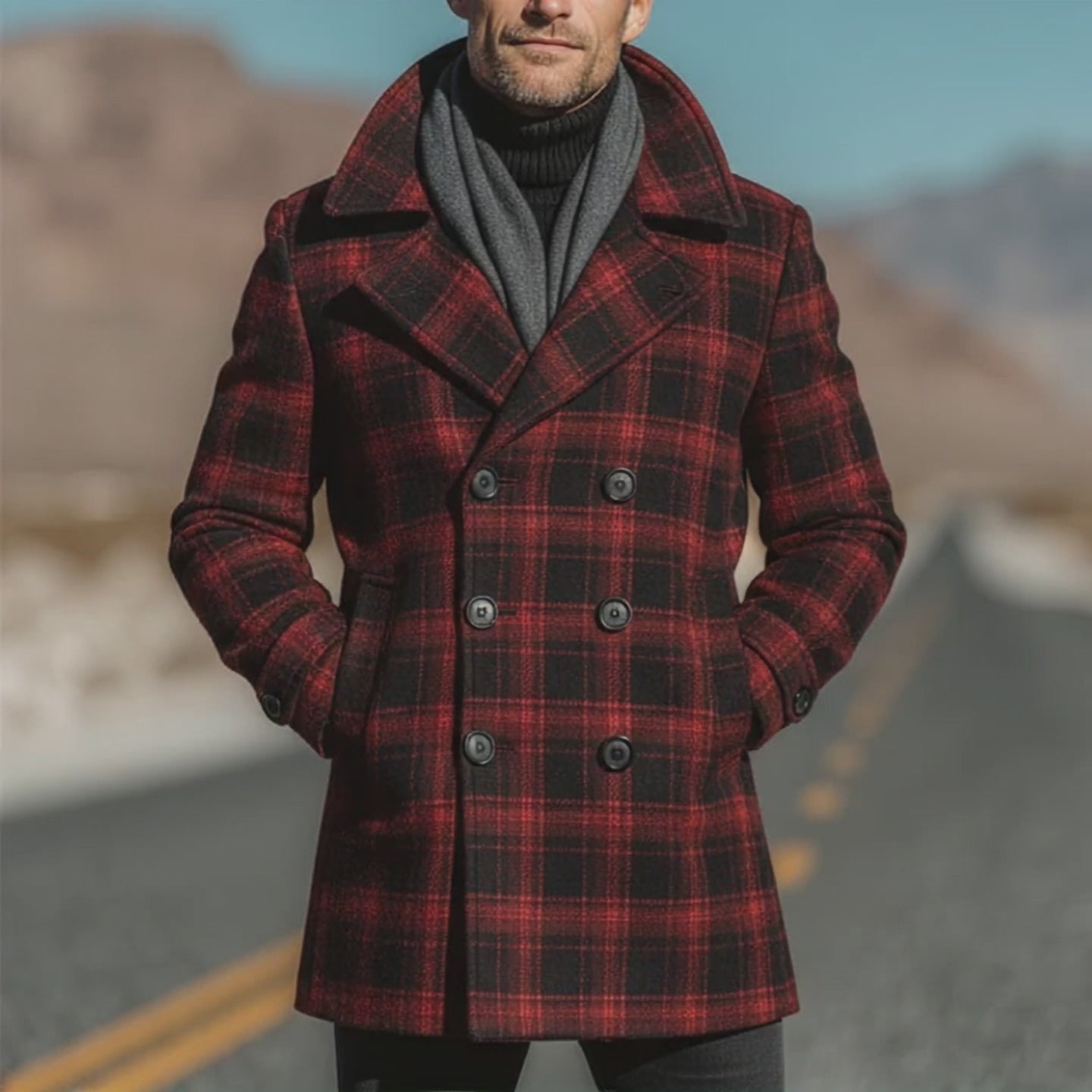 Men's Winter Fashion Plaid Faux Wool Mid-length Lapel Coat MTA1195J8P