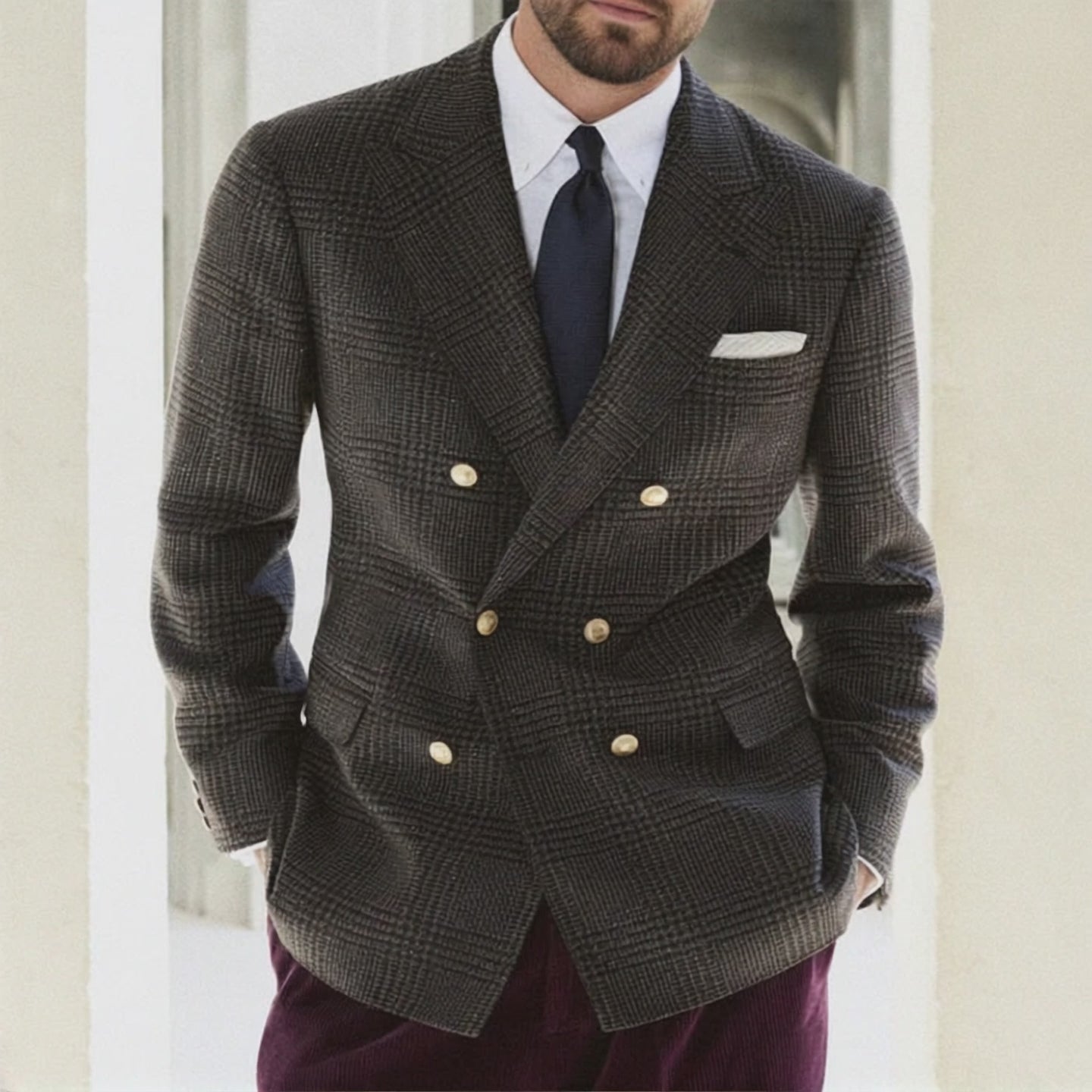 Men's Matte Velvet Lapel Double-Breasted Jacket MTA0743K3X