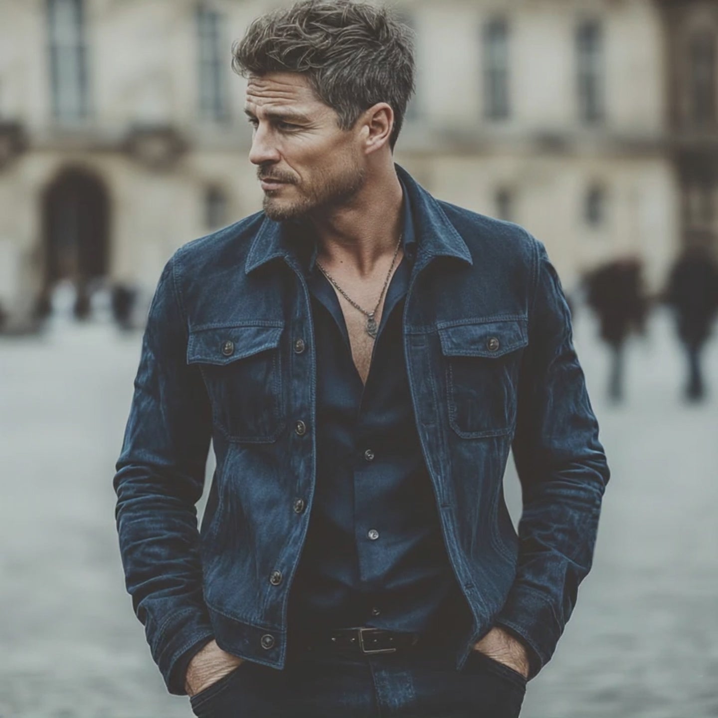 Men's Classic Navy Faux Suede High Hip Button-up Jacket MTZ0568A2U