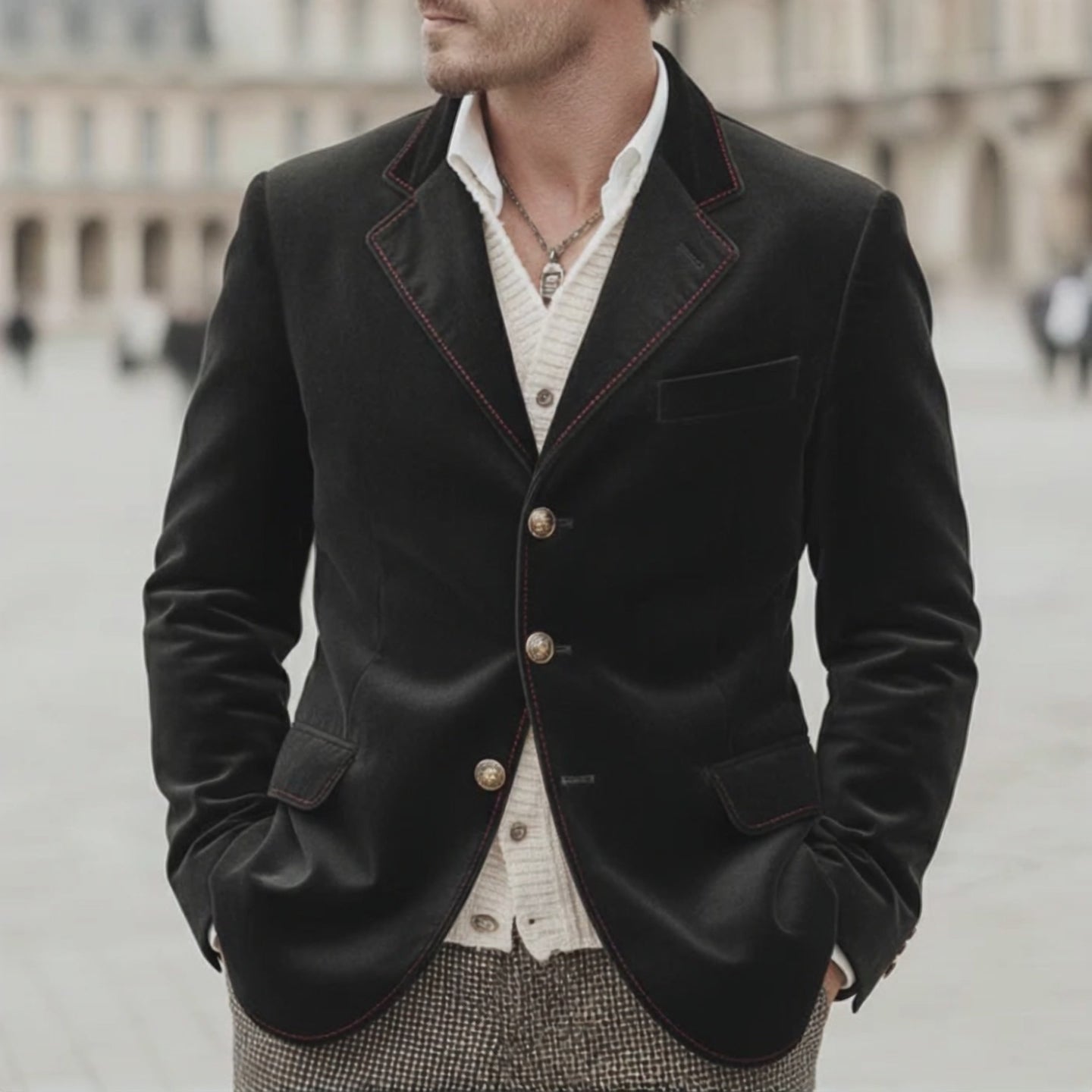 Men's Vintage Velvet Stand-Collar Multi-Button Embroidered Slim-Fit Jacket MTA1188K3U