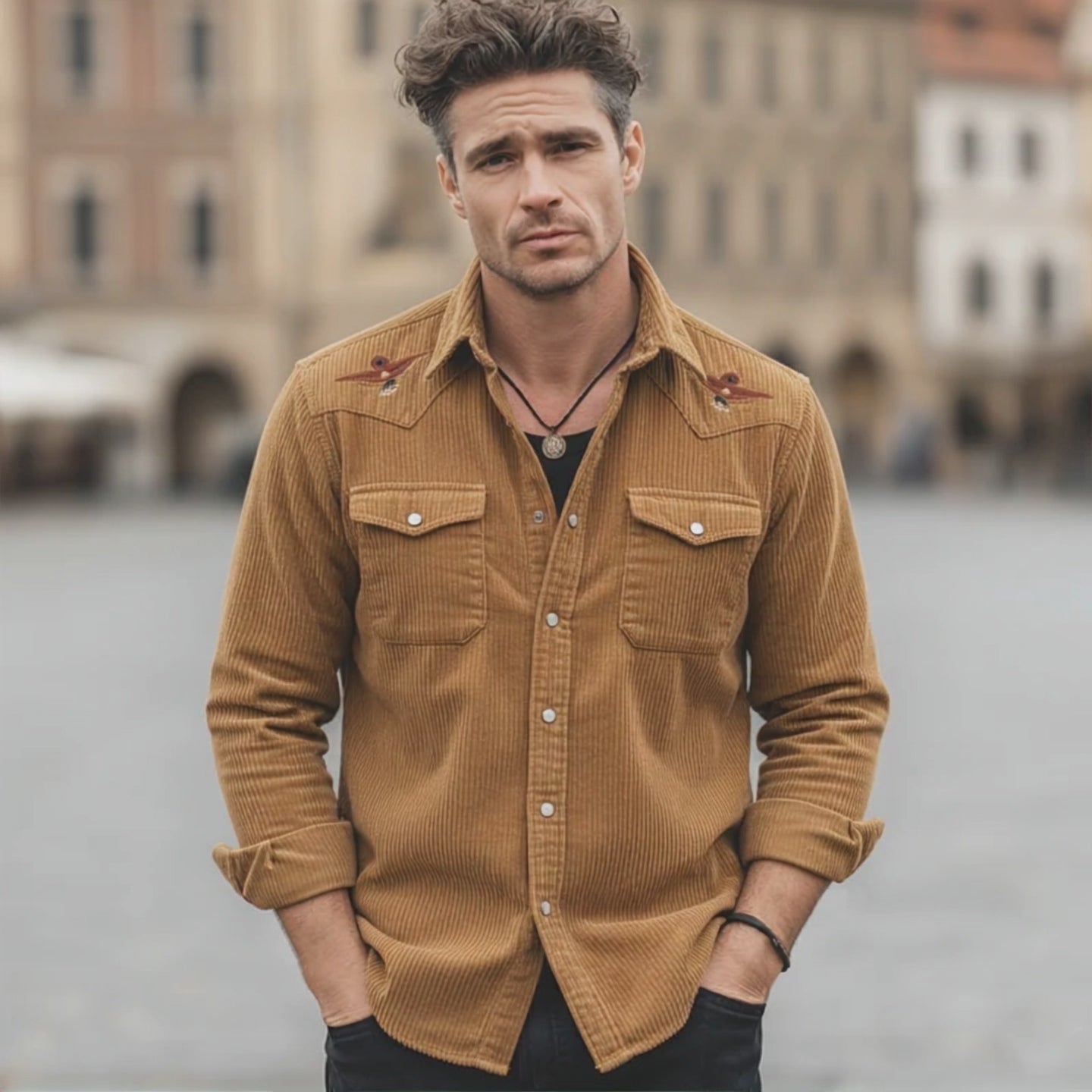 Men's Classic Vintage Velvet Printed Long-sleeved Shirt MTA3096L7K