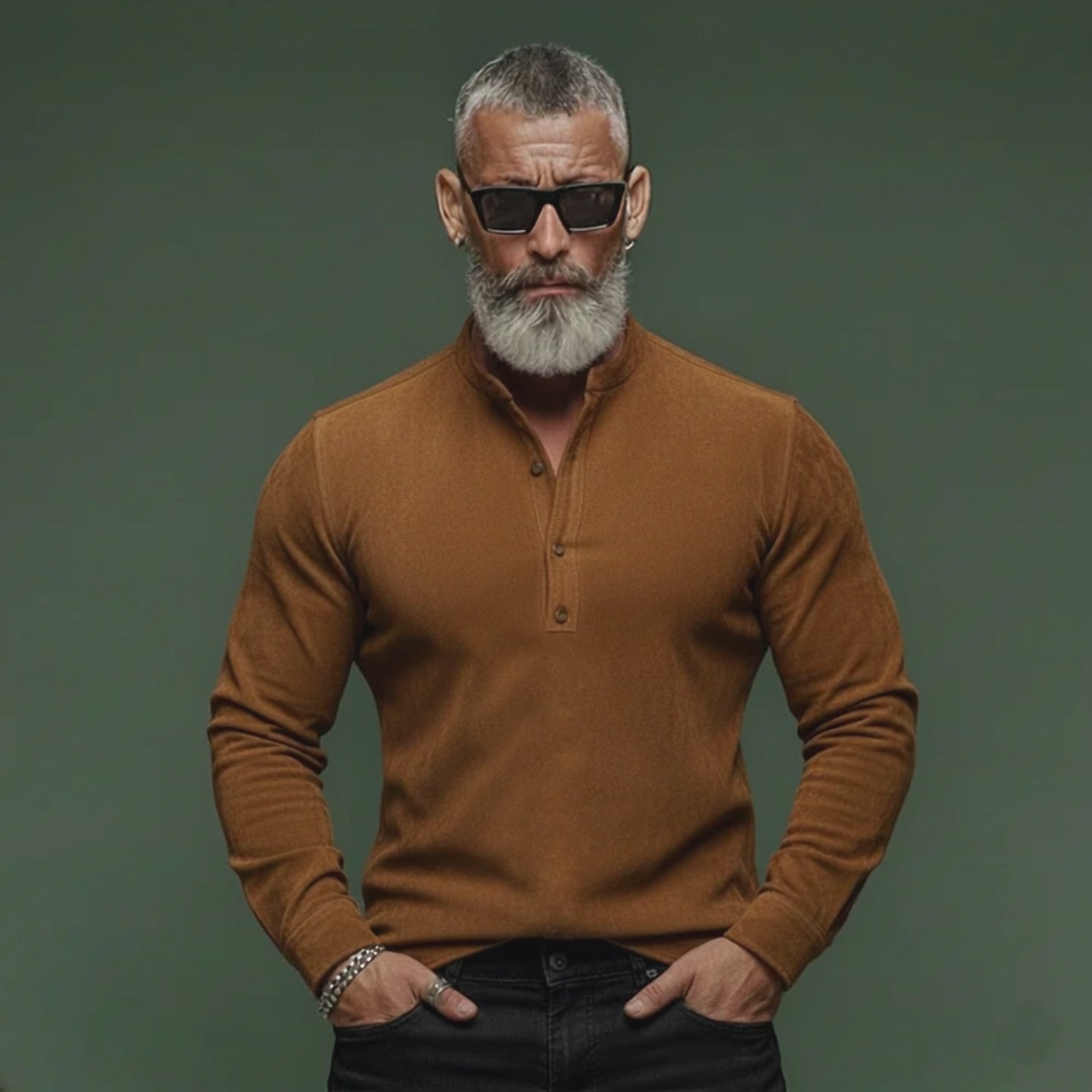 Men's Classic Three-button Henley Collar Stretch Slim Fit Sweater MTA0867K6U