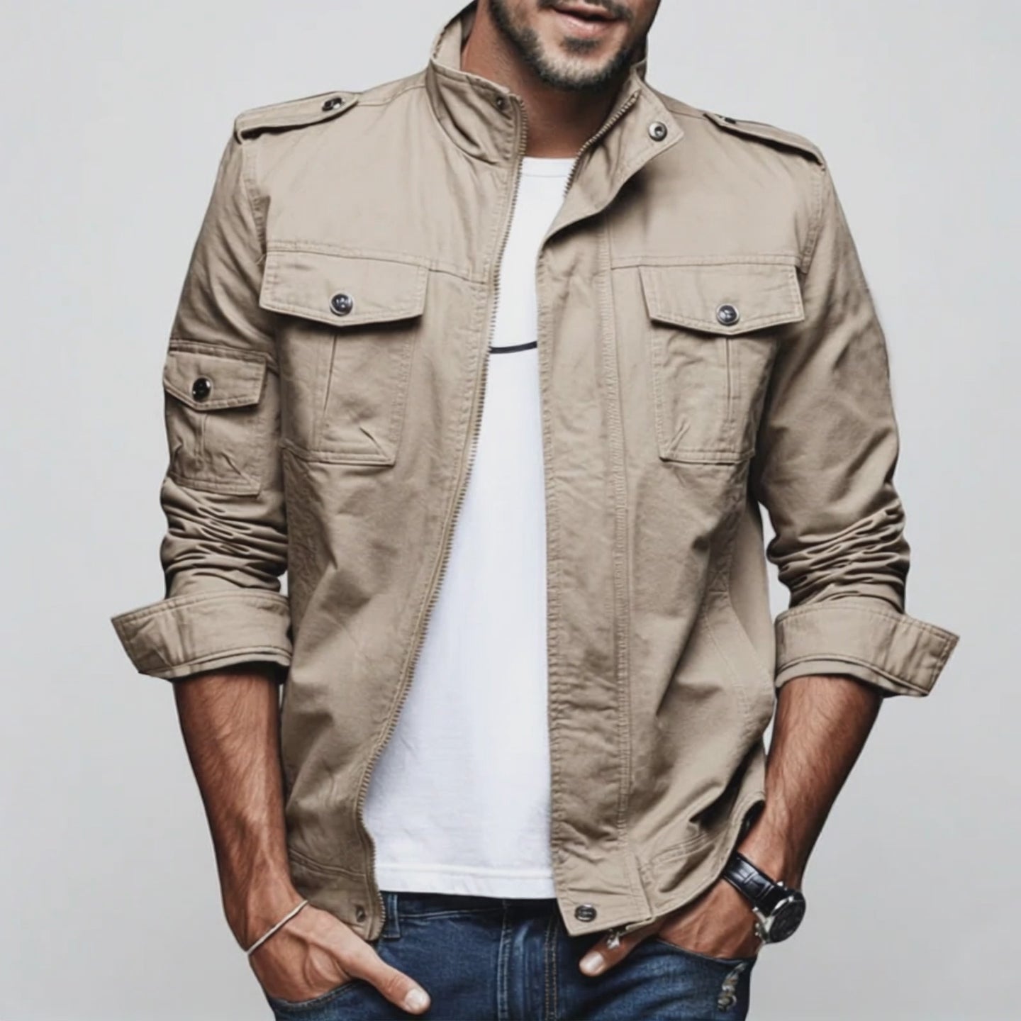 Men's Classic Cotton Multi-pocket Stand-collar Zip-up Jacket MTZ0430A3U