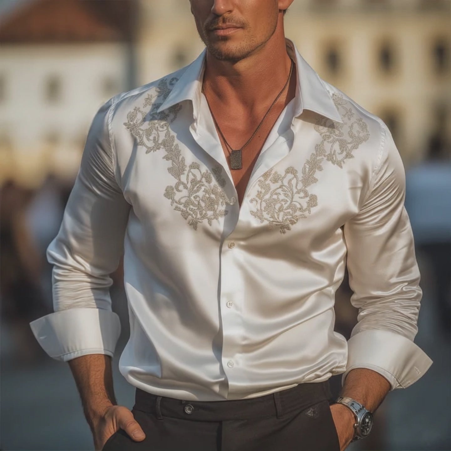 Men's Classic Vintage Blended Jacquard Long-sleeved Shirt MTA3057L9K
