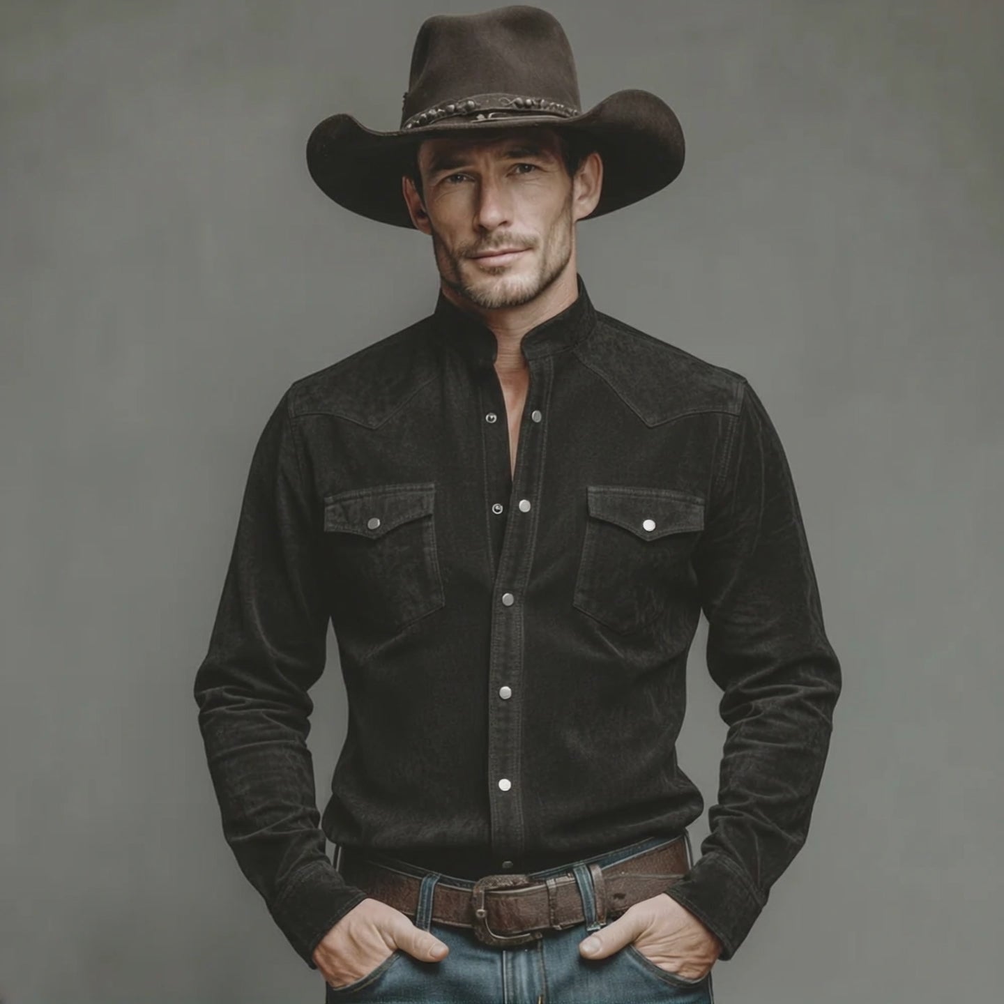 Men's Retro Casual Cotton Western Cowboy Lapel Button Jacket MTZ0534A4TO