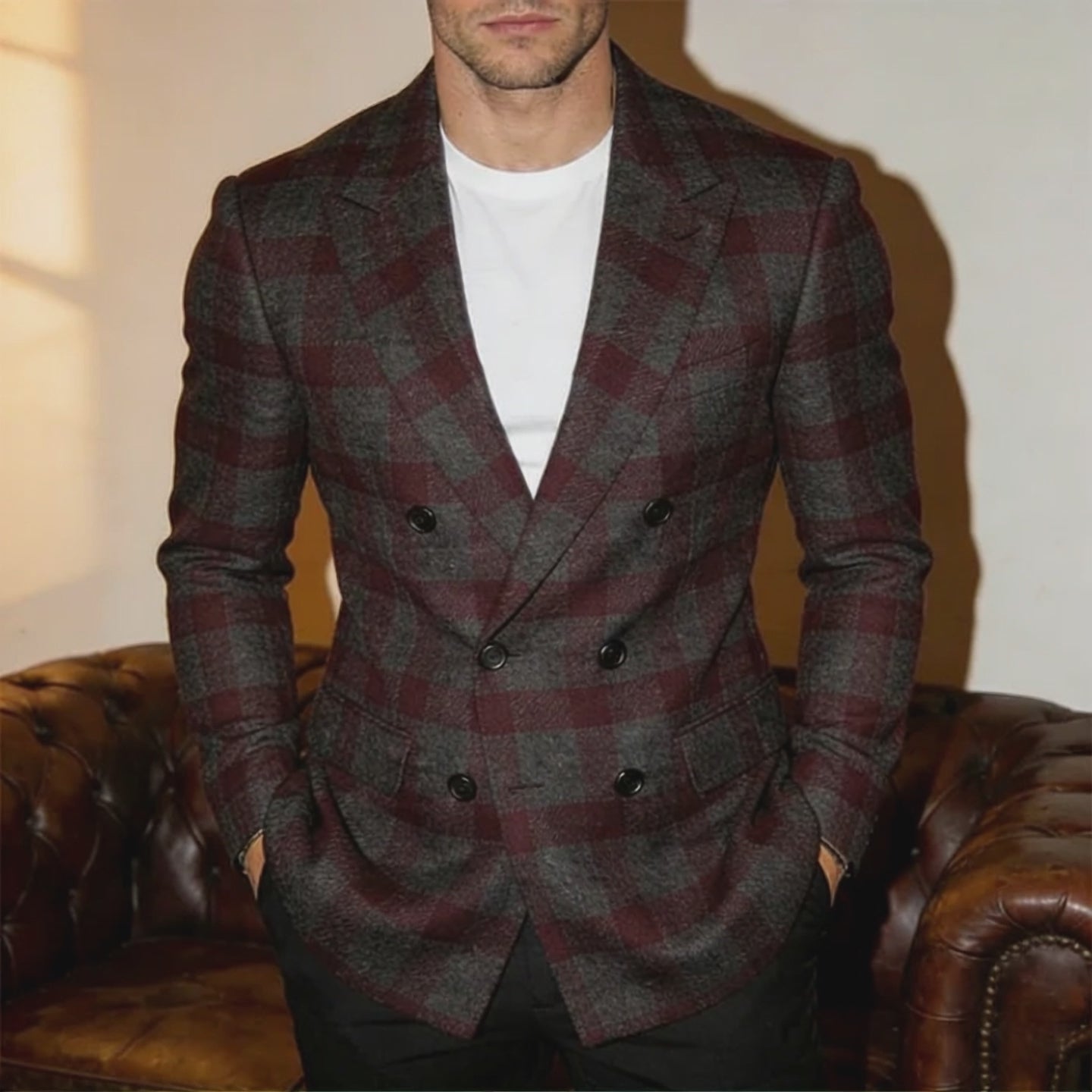 Men's Retro Casual Plaid Double-Breasted Lapel Jacket MTA1512L2TO
