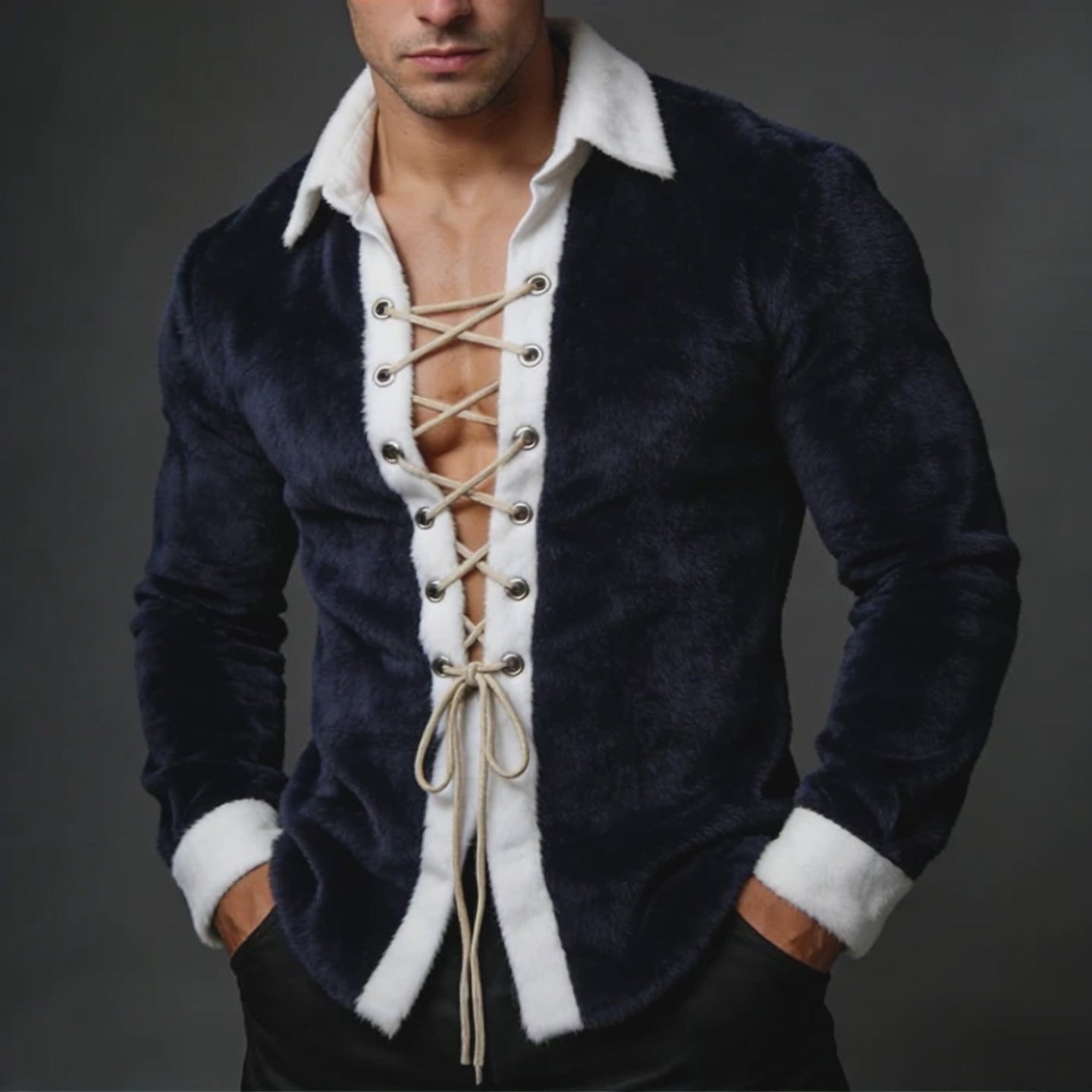 Men's Ribbed Textured Collar Long-Sleeve Shirt MTA2259K2X