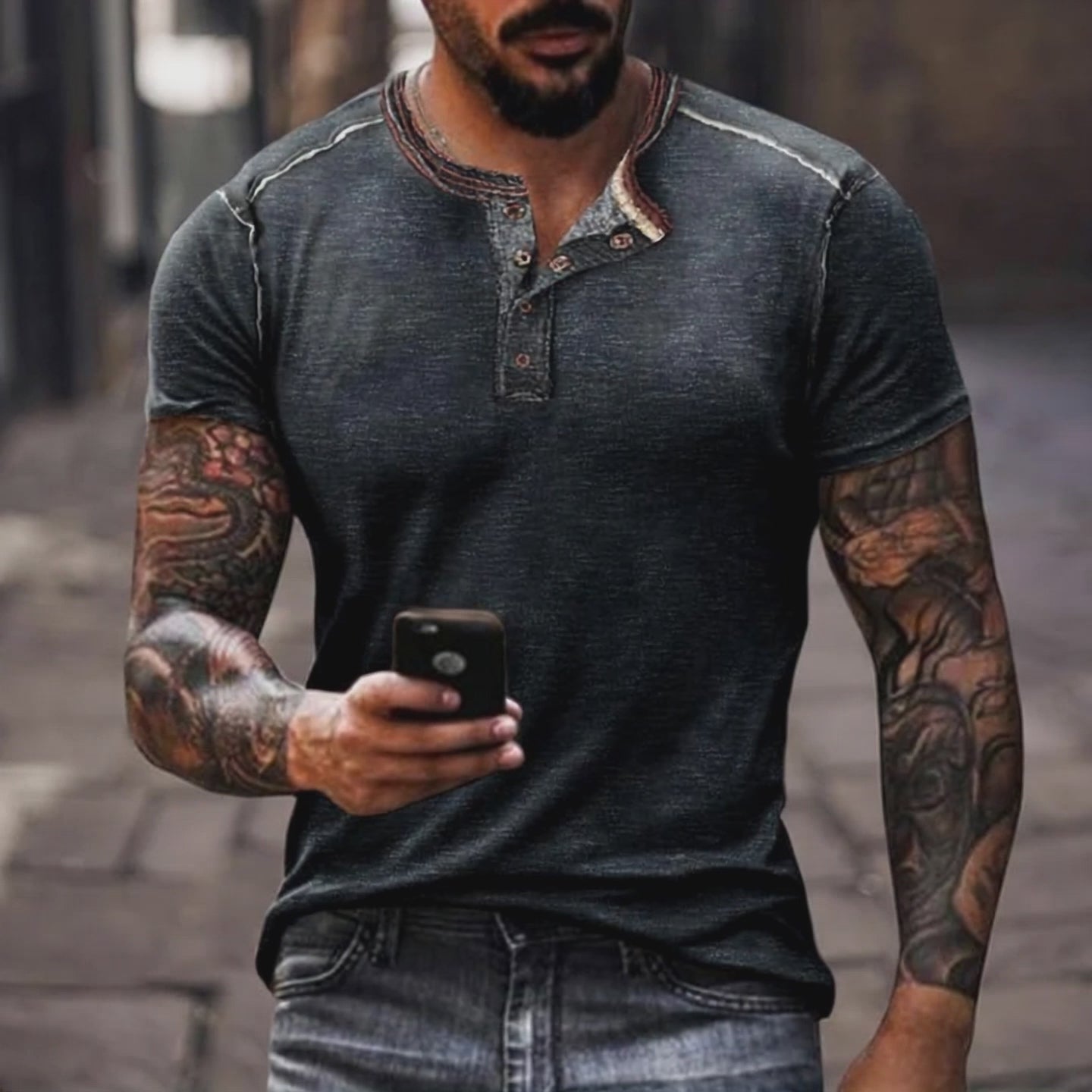 Men's Vintage Solid Color Short Sleeve Henley Neck T-Shirt 99269418Y