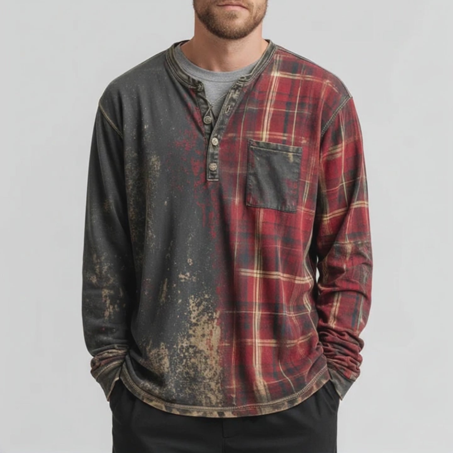 Men's Vintage Colorblock Henley Collar Long Sleeve T-Shirt 97293227Y
