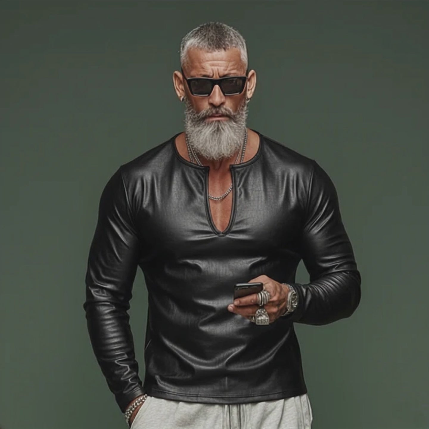 Men's Retro Casual PU Zipper Long-Sleeve T-Shirt MTA1922K2TO