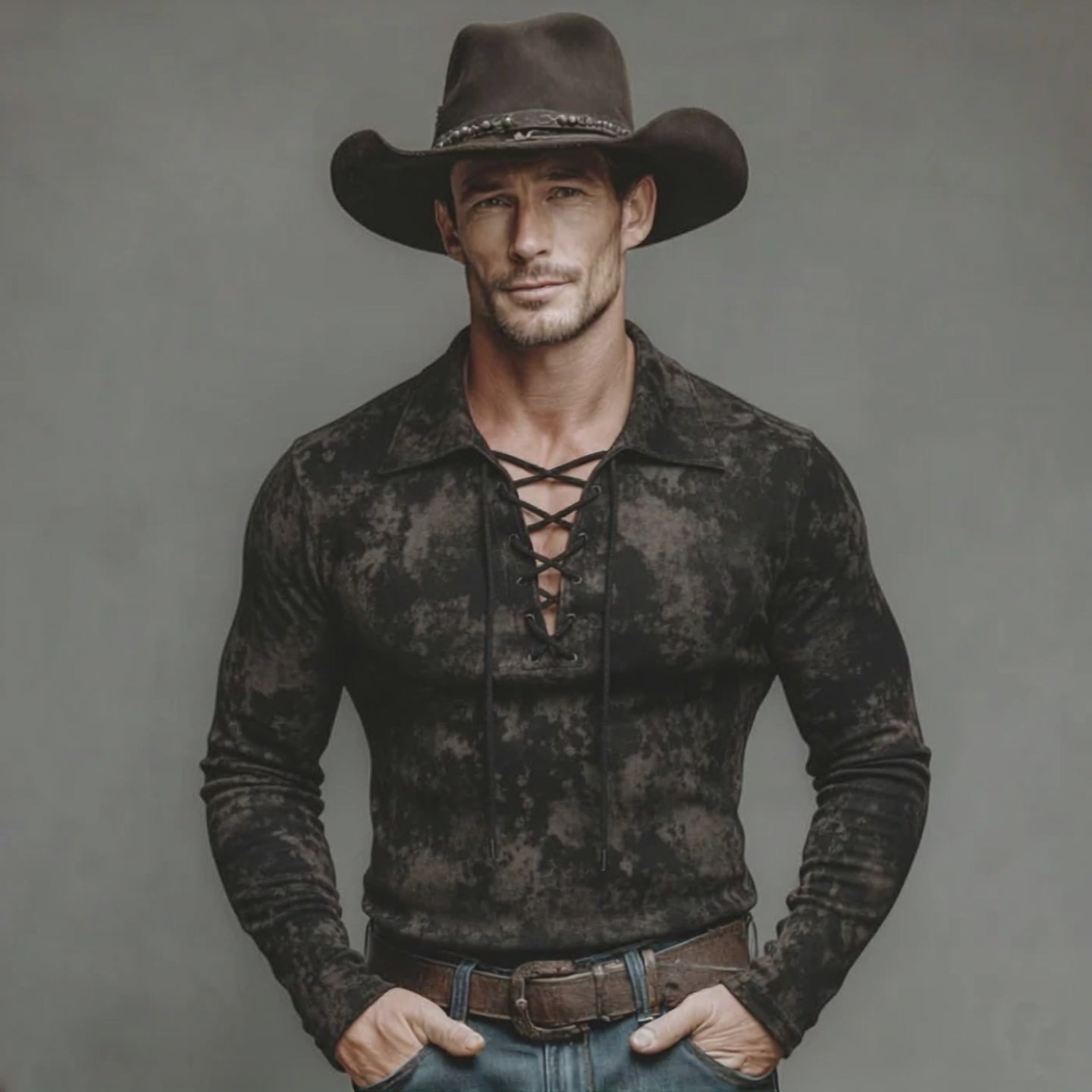 Men's Retro Print Cotton Blend V-Neck Long Sleeve T-Shirt MTA2961K7P