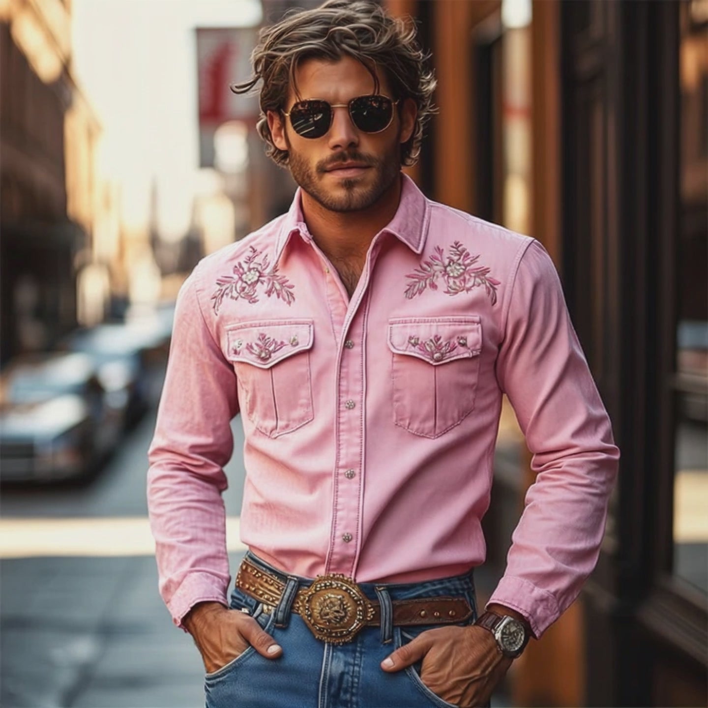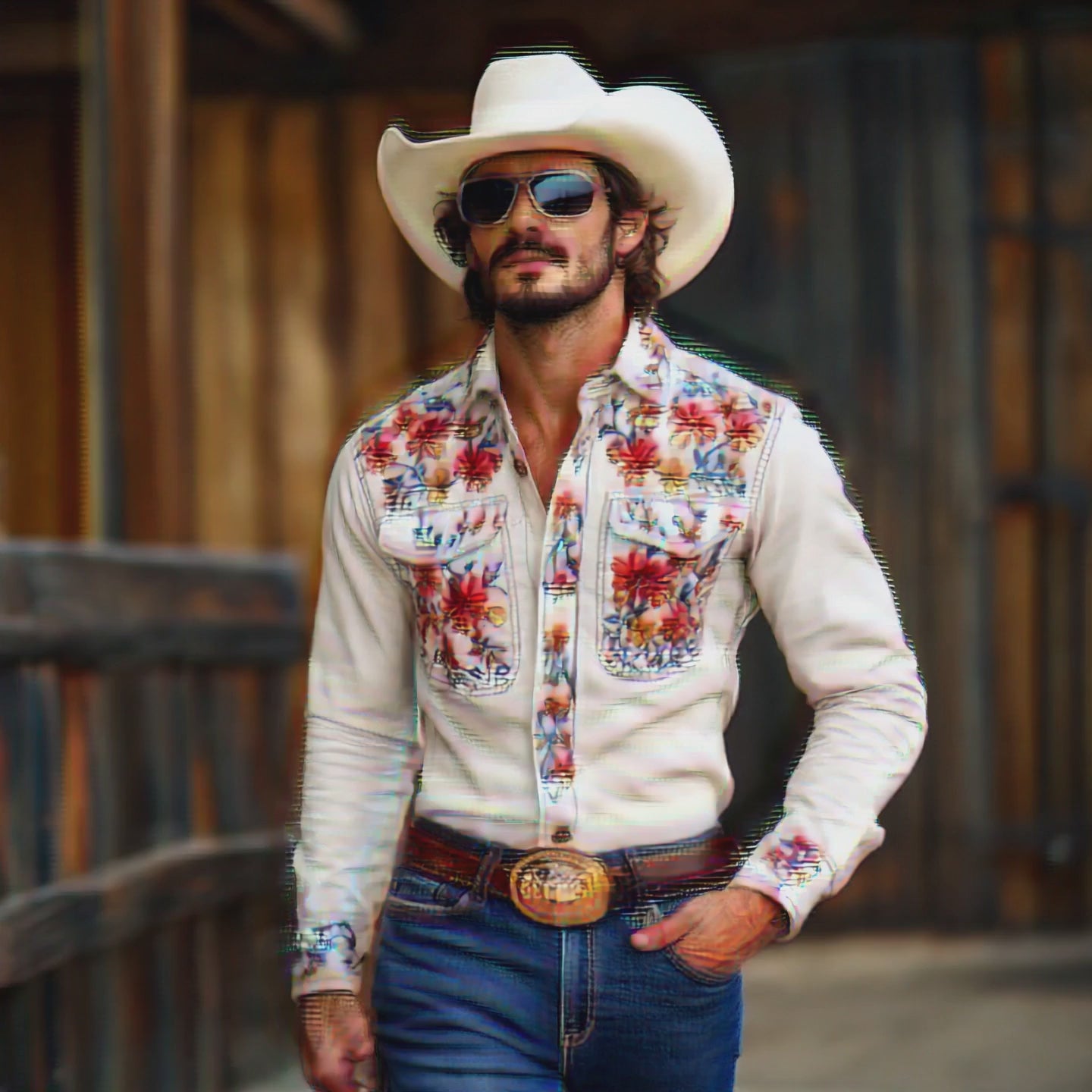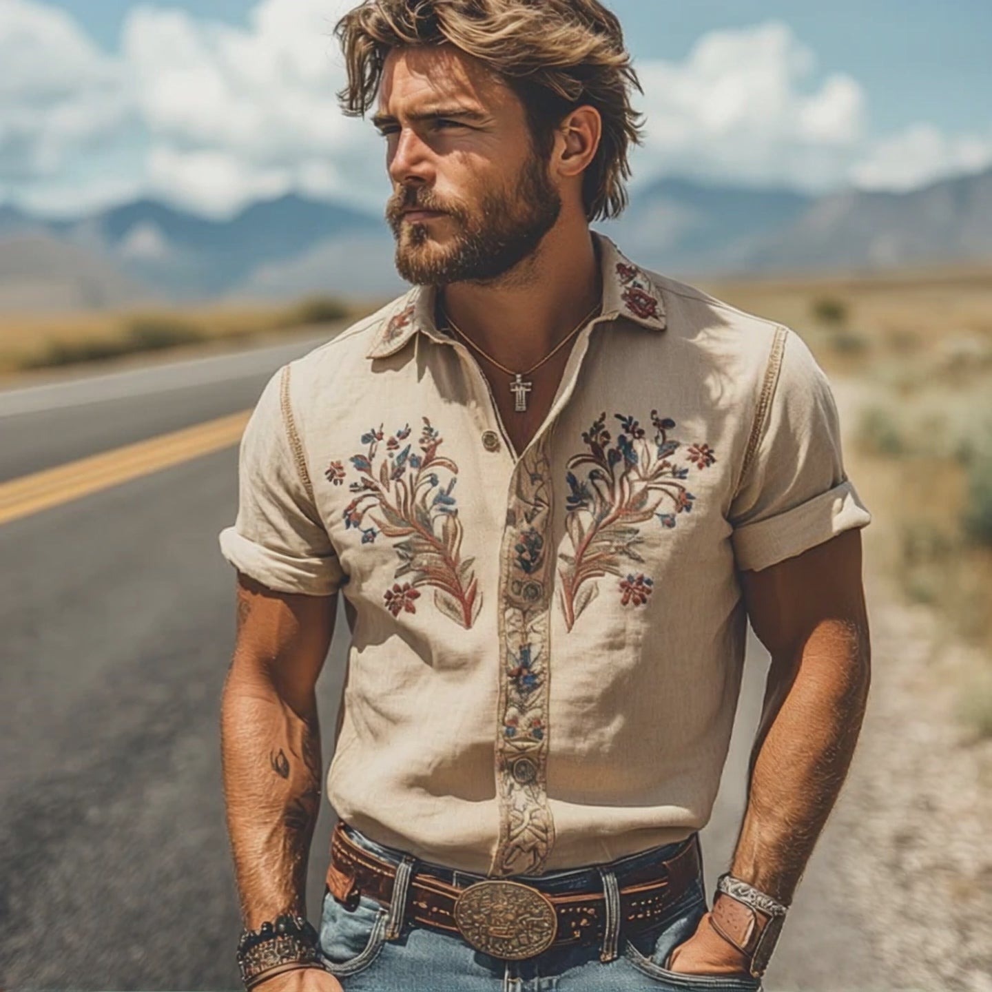 Retro Casual Western Cowboy Brodert Langermet skjorte for menn 41821327TO