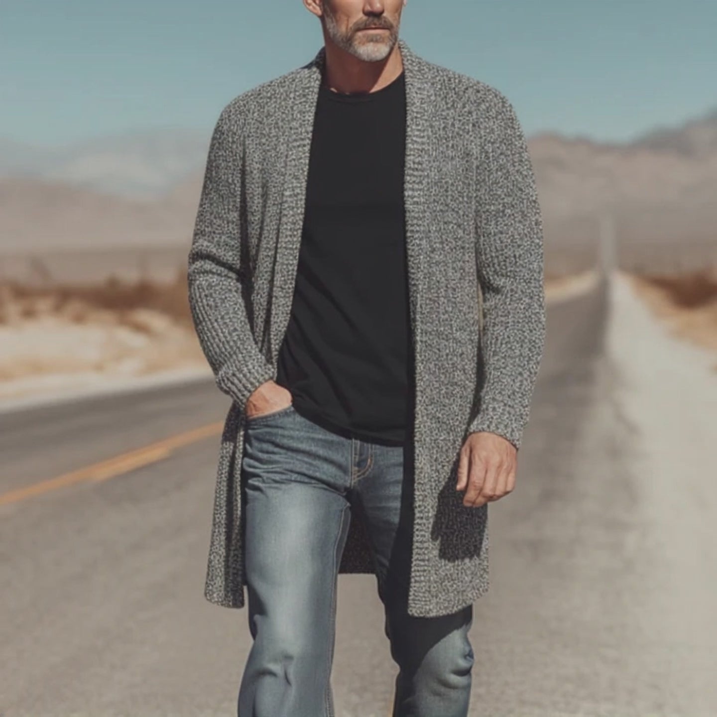 Men's Autumn And Winter Fashion Mixed Color Cotton Yarn Knitted Mid-length Cardigan MTA2355I5P