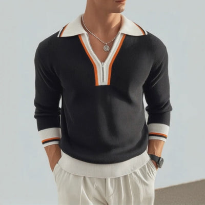Produktnavn: Herre casual kontrastfarget glidelås med slaglengde, slim fit og strikket langermet poloskjorte