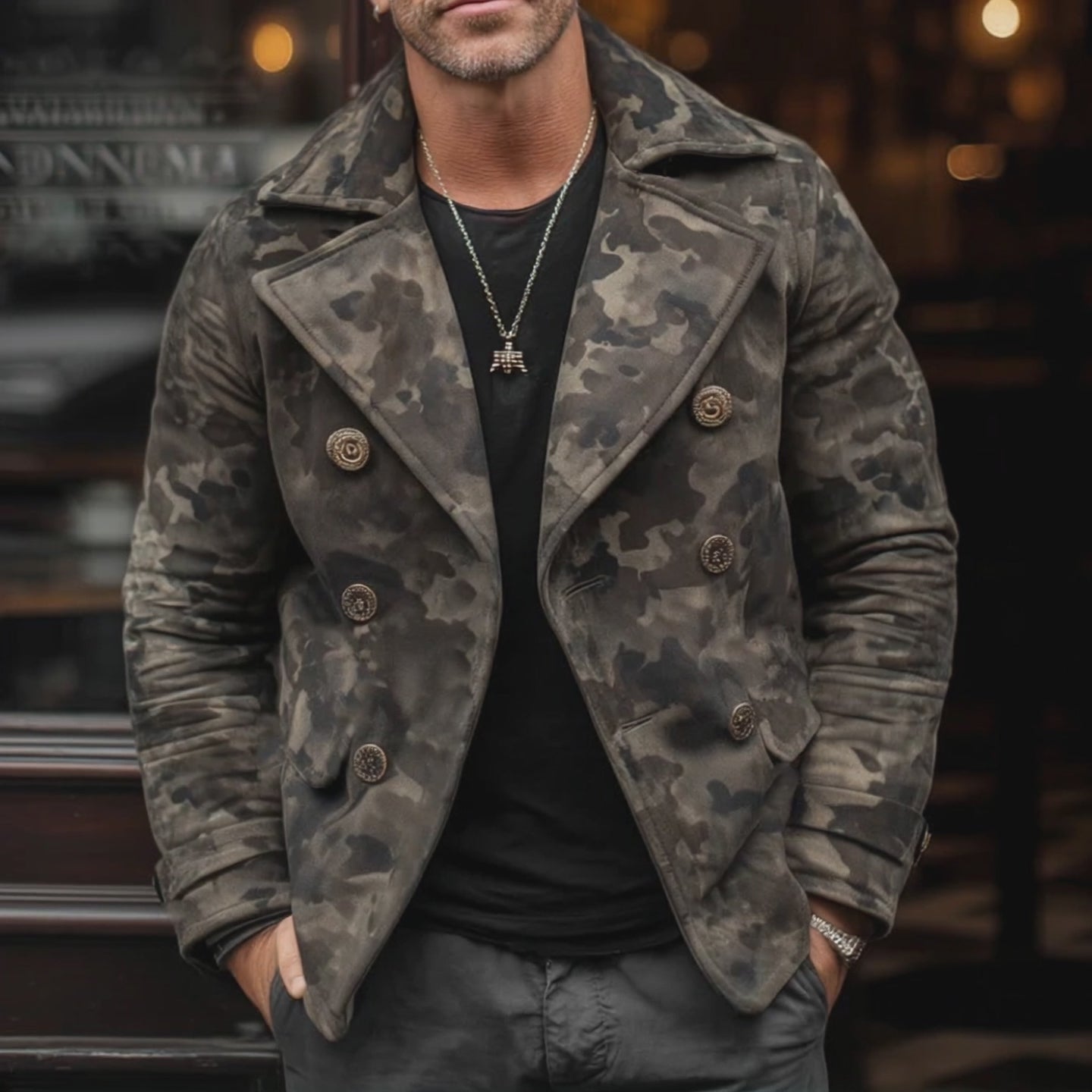 Men's Classic Camouflage Print Suede Double-Breasted Jacket