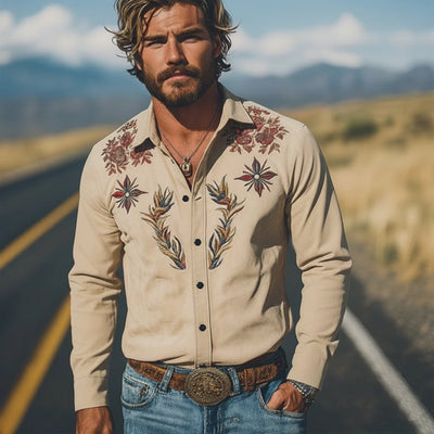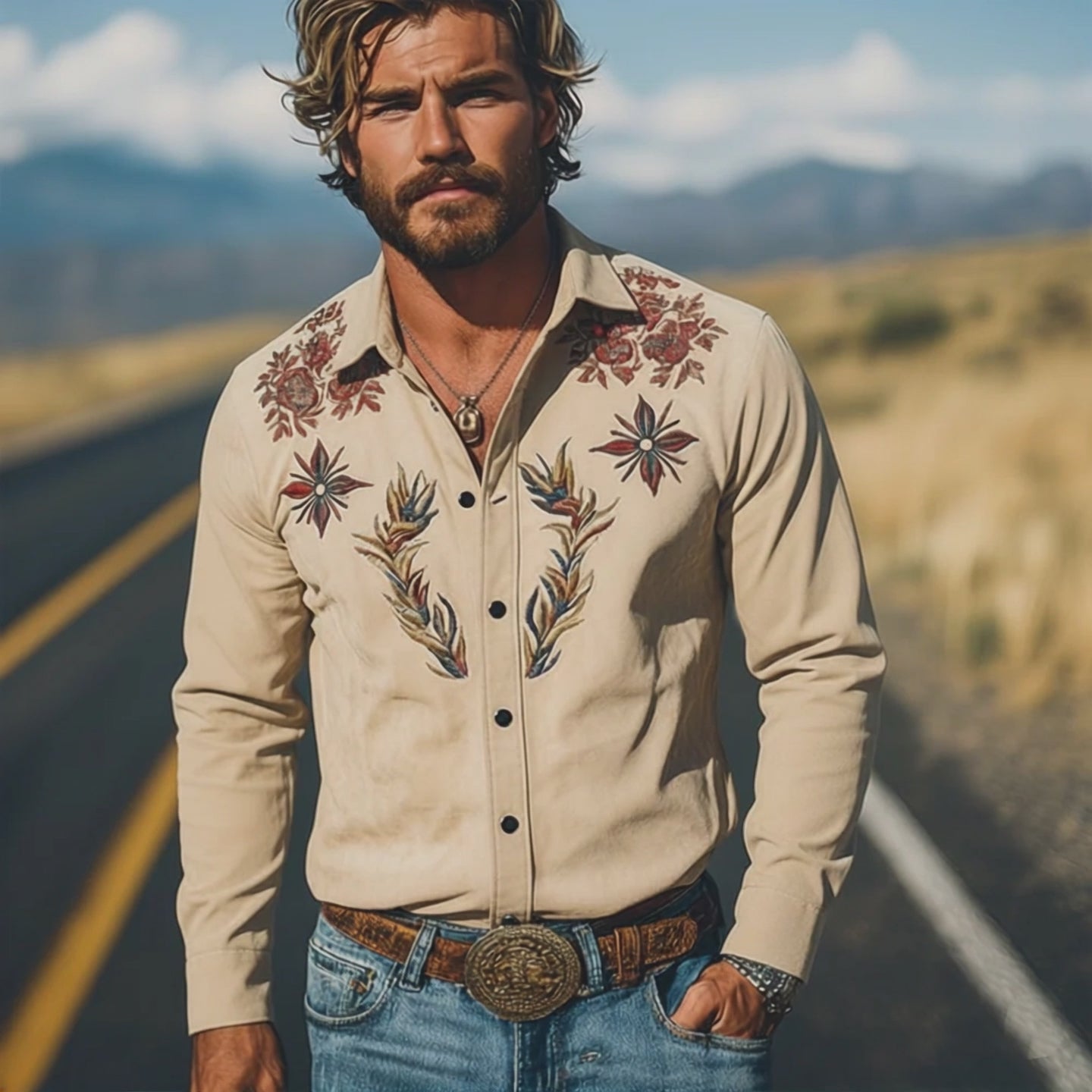 Men's Classic Casual Faux Suede Embroidered Long-sleeved Shirt MTZ0941A5K