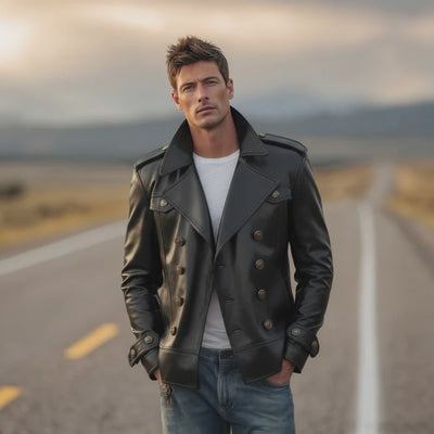 The MEN'S CLASSIC CASUAL LAPEL DOUBLE-BREASTED PU LEATHER JACKET offers a refined, versatile outer layer that blends a premium PU leather look with a timeless double-breasted silhouette. Its tailored fit, functional pockets, and durable construction make it a dependable choice for elevating everyday outfits with a confident, polished edge.