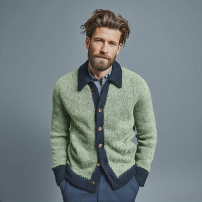 The Men’s Classic Casual Lapel Cardigan with green and navy blue accents combines a timeless cardigan vibe with a modern color-block twist. Its lapel detail, soft knit, and versatile silhouette make it a reliable go-to layer for smart-casual, casual, and everyday outfits, delivering comfort, durability, and a contemporary edge.