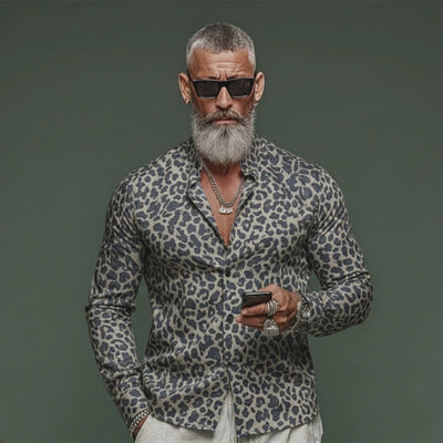 The Men’s Classic Casual Rugged Denim Jacquard Leopard Print Long-sleeved Shirt offers a bold fusion of rugged denim-inspired texture and dramatic jacquard patterning. With its leopard jacquard, long sleeves, and versatile layering potential, it serves as a standout mid-layer or statement top for smart-casual to casual-western looks across seasonal transitions.