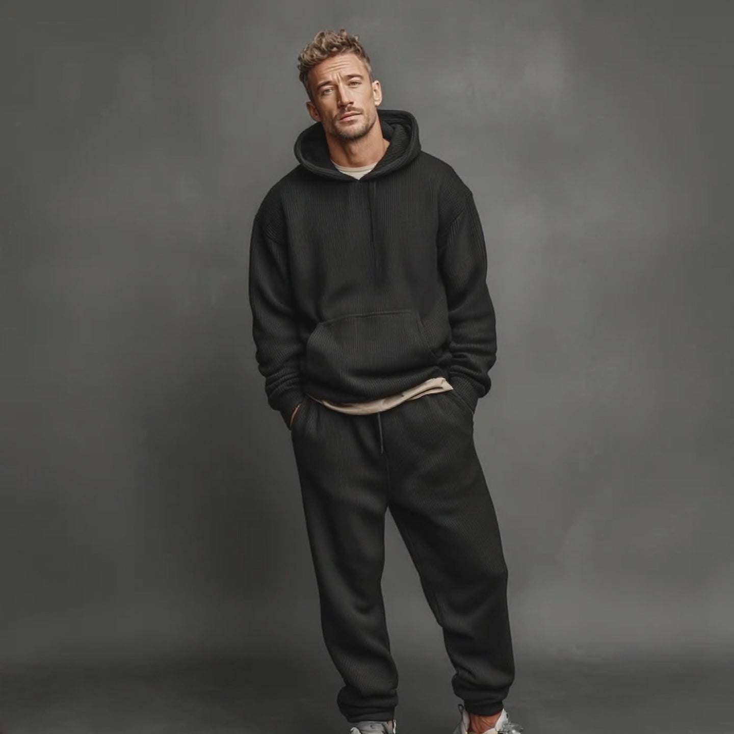 The MEN'S CLASSIC CASUAL STRIPED KNIT HOODIE + ELASTIC WAIST PANTS SET delivers a coordinated, comfortable option for relaxed days. With a striped knit hoodie and matching elastic-waist pants, the set offers a versatile blend of comfort, style, and practicality for everyday wear.