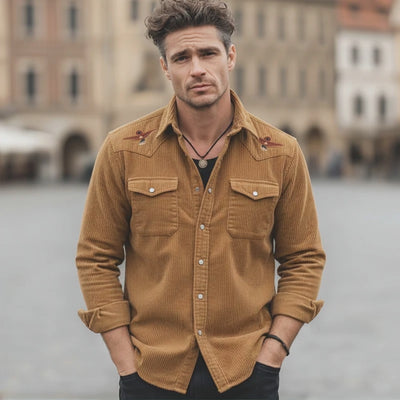 Men's Classic Corduroy Embroidered Casual Long-sleeved Shirt MTZ0537A6U
