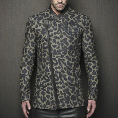 The Men’s Classic Vintage Denim Jacquard Leopard Print Jacket fuses rugged denim meets bold jacquard leopard pattern to create a statement outerwear piece with a retro-inspired vibe. Designed for casual to elevated casual looks, this jacket offers texture, visual intrigue, and versatile styling that transitions seamlessly from day to night and across seasons.