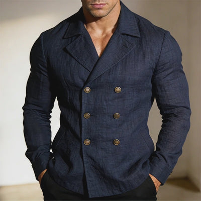 Men's Retro Casual Cotton Linen Double-Breasted Lapel Jacket MTA1921L6TO