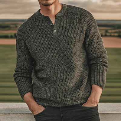 Men's Retro Casual Knitted Henley Collar Sweater MTA1750L9TO