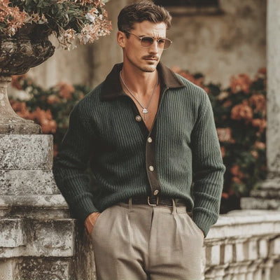 Men's Retro Colorblock Button Knit Cardigan