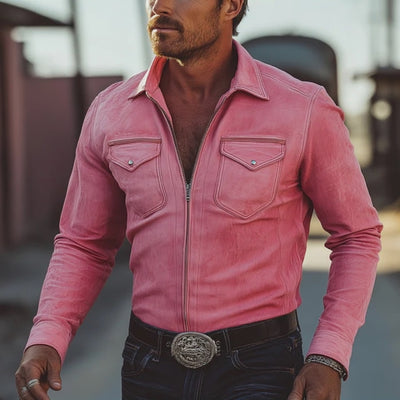 Perfect for the modern man who appreciates a blend of retro styling and contemporary comfort, this zippered faux suede shirt delivers on all fronts. Its adaptable design makes it a must-have addition to any wardrobe, ensuring that you look effortlessly stylish no matter the occasion.
