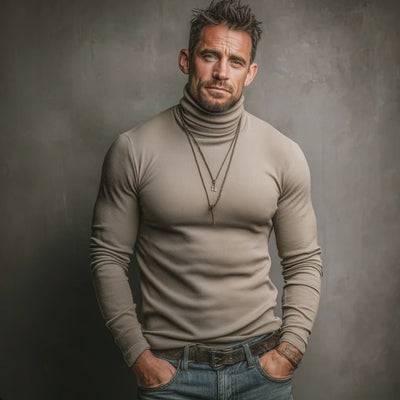 This turtleneck sweater pairs perfectly with dark denim jeans or tailored trousers for a polished look. Layer it under a blazer for a refined appearance, or add a leather jacket for a more edgy, urban style. Complete the ensemble with boots or dress shoes depending on the occasion.